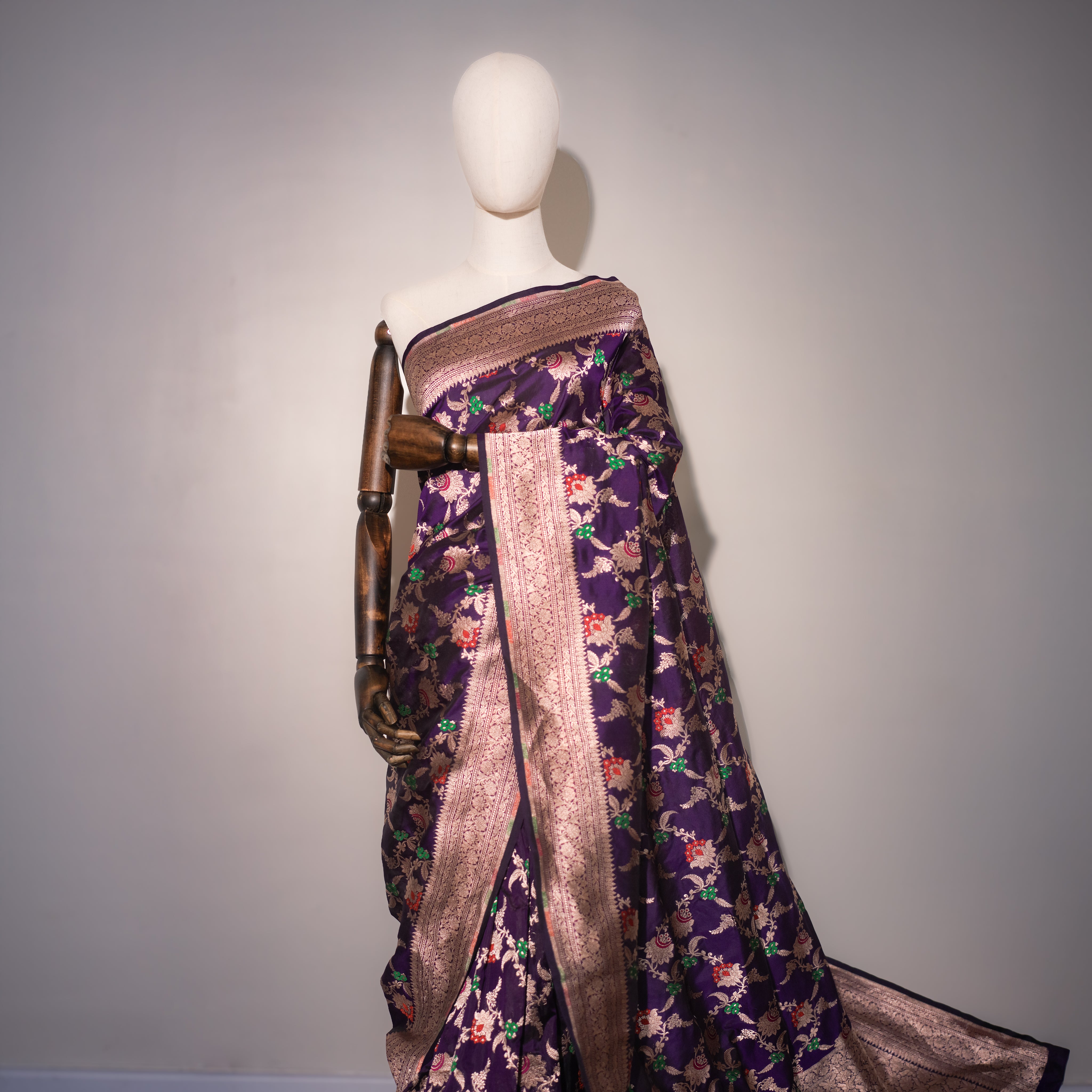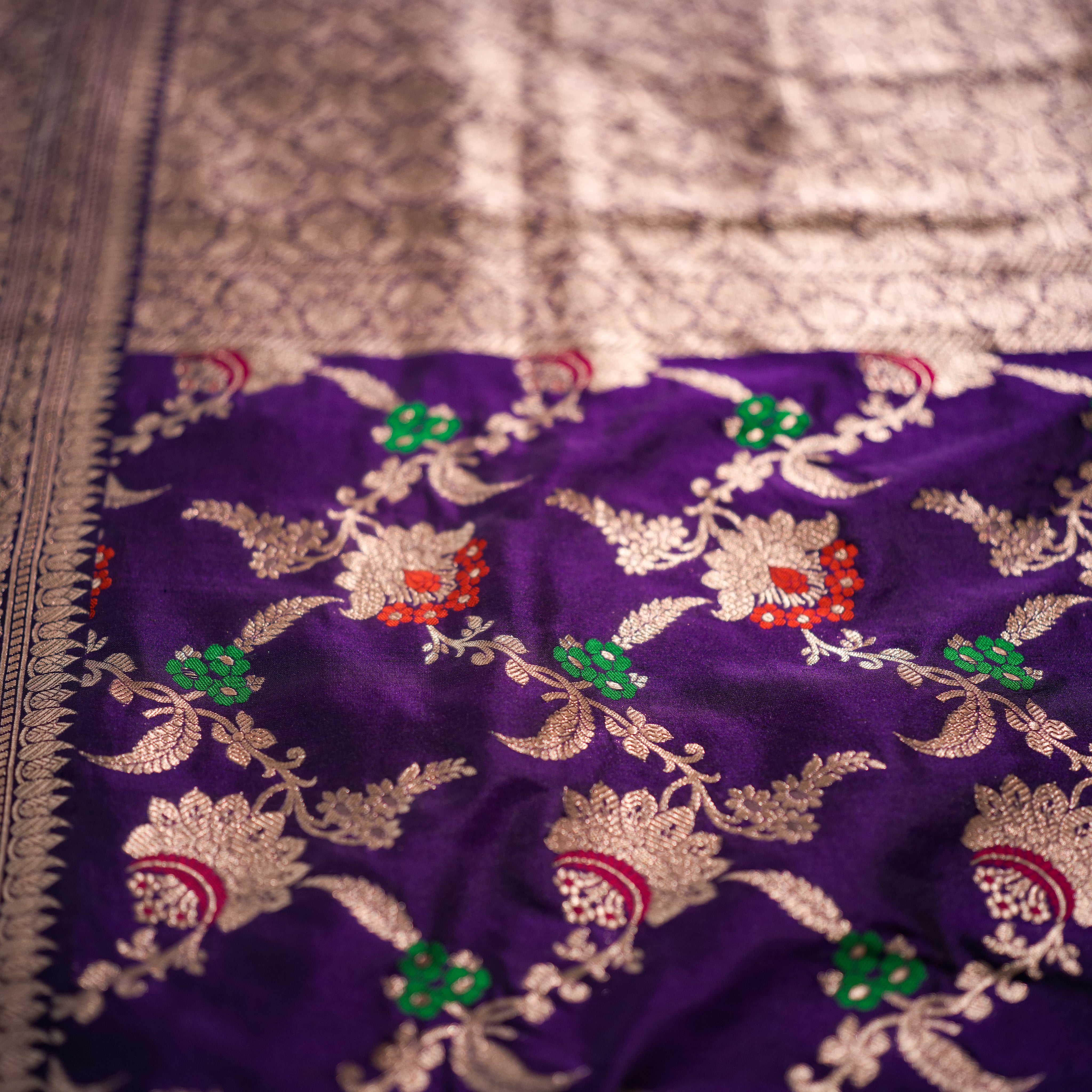 Royal Enchantress – Pure Banarasi Silk in Violet and Zari Bloom