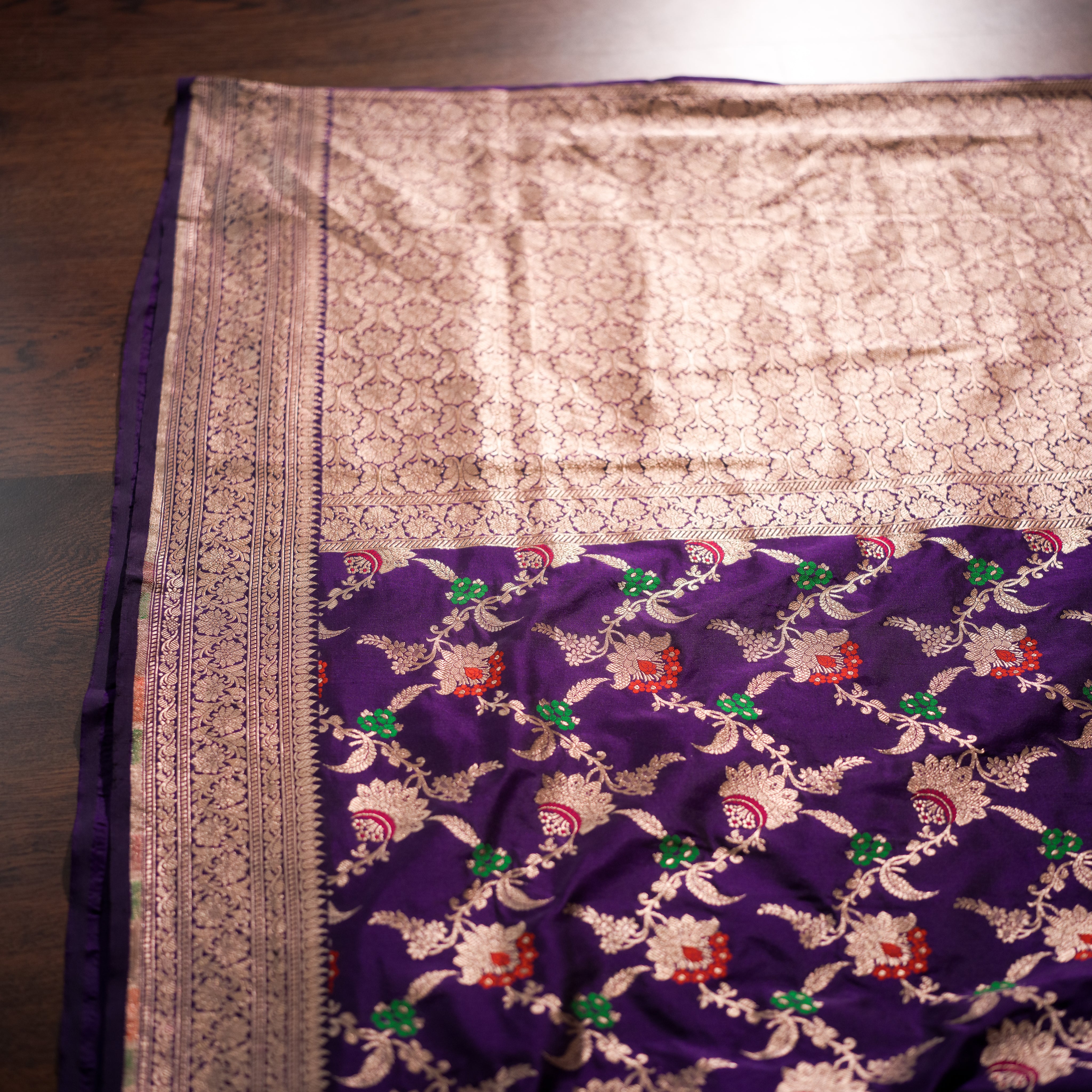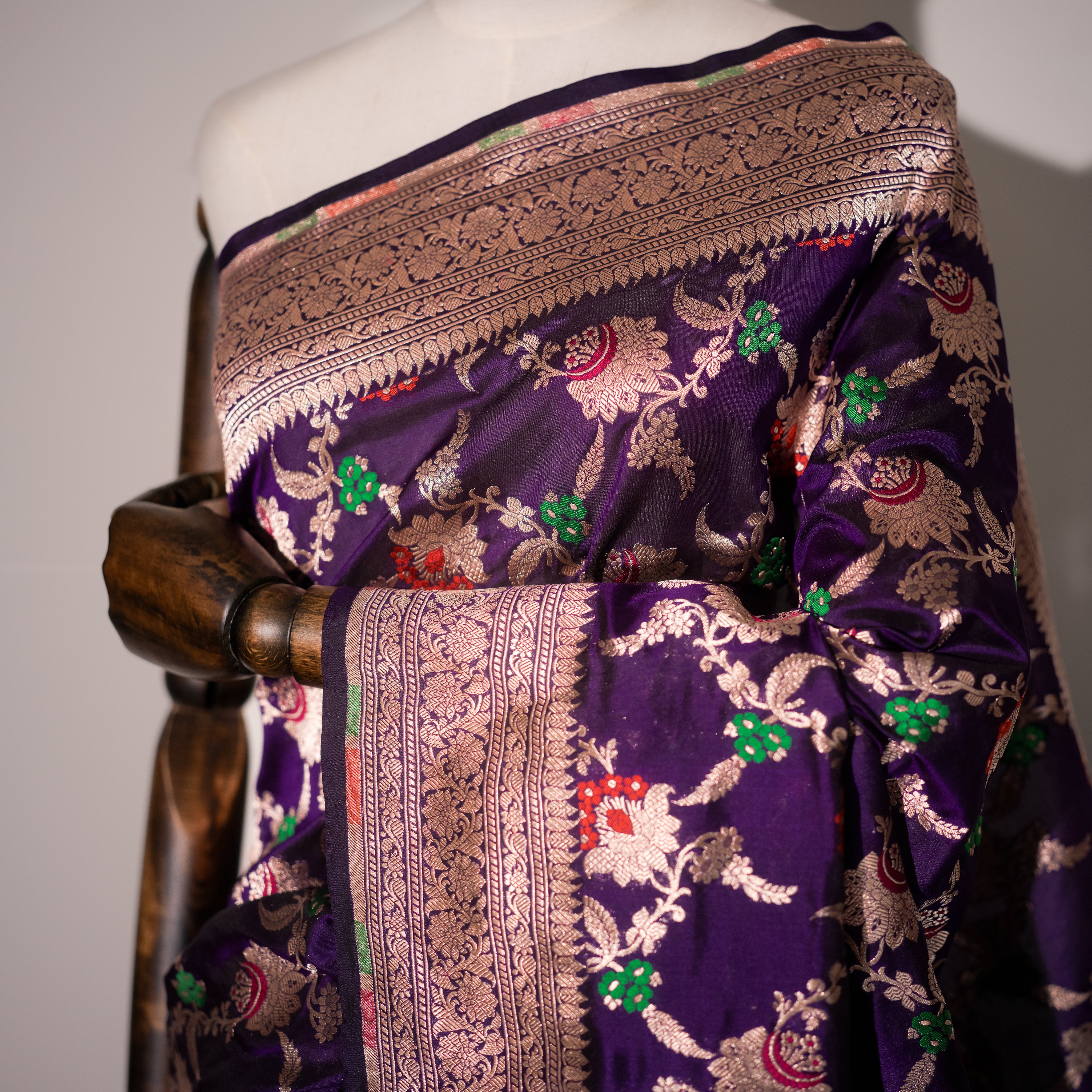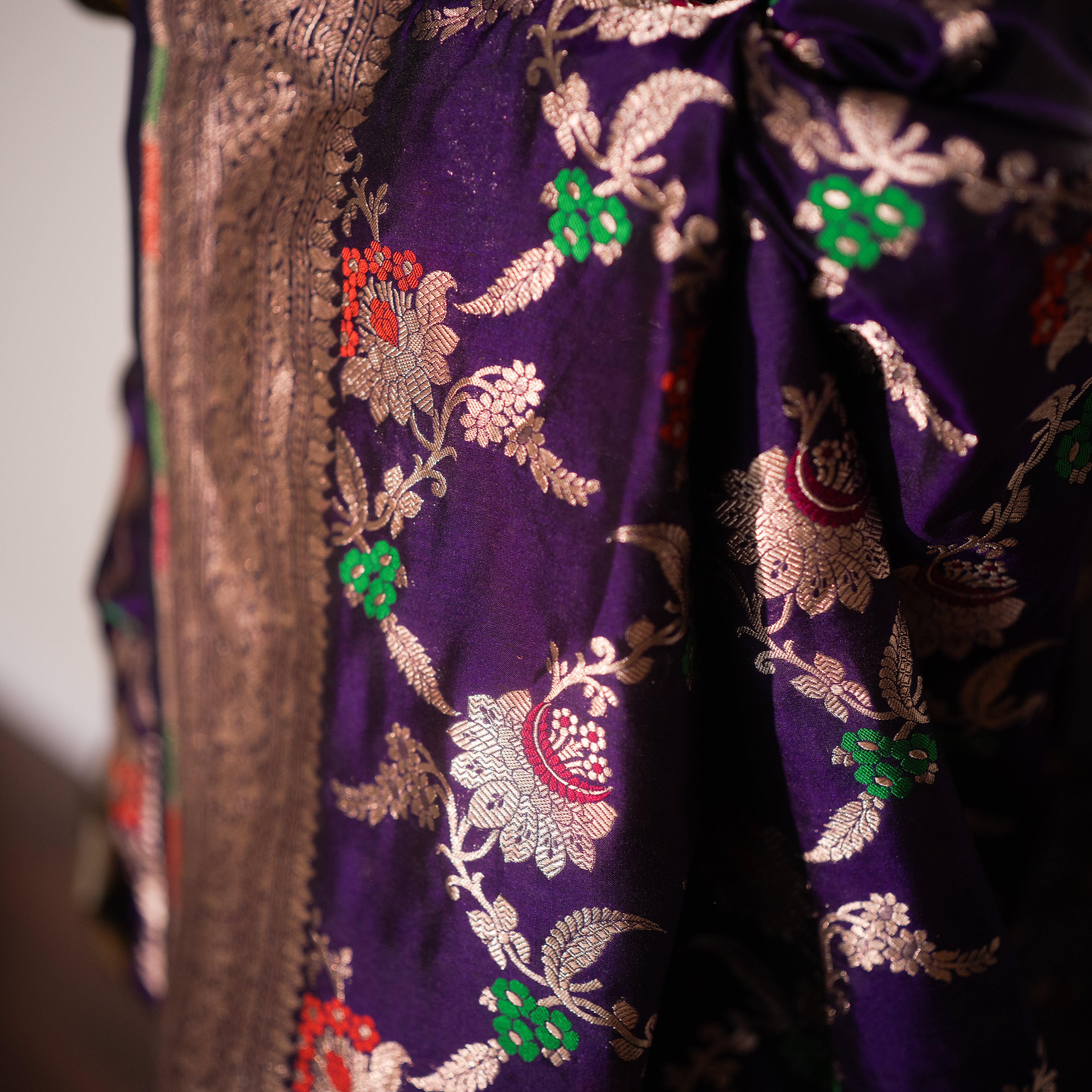 Color – Rich Purple (with multicolor floral highlights and antique gold zari)