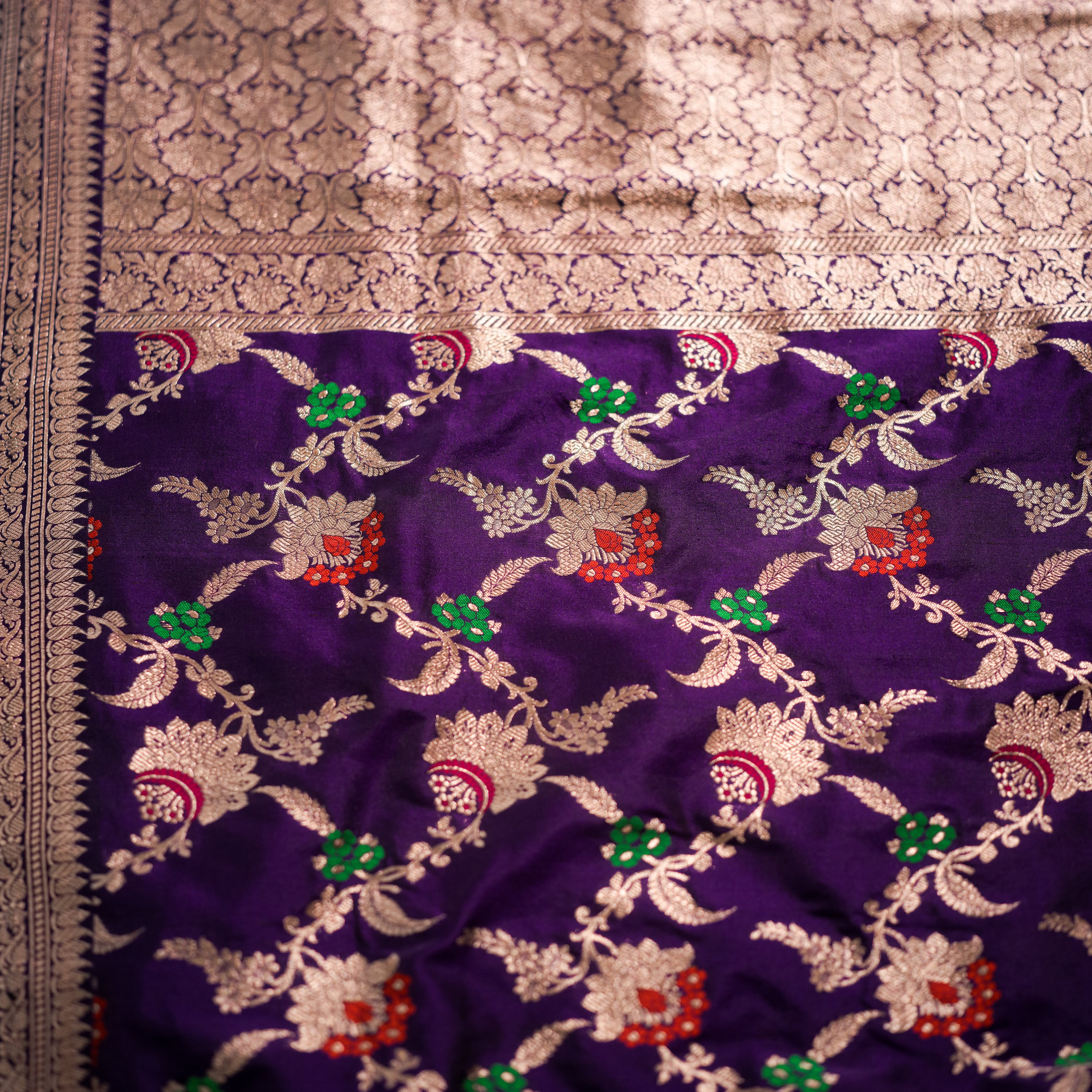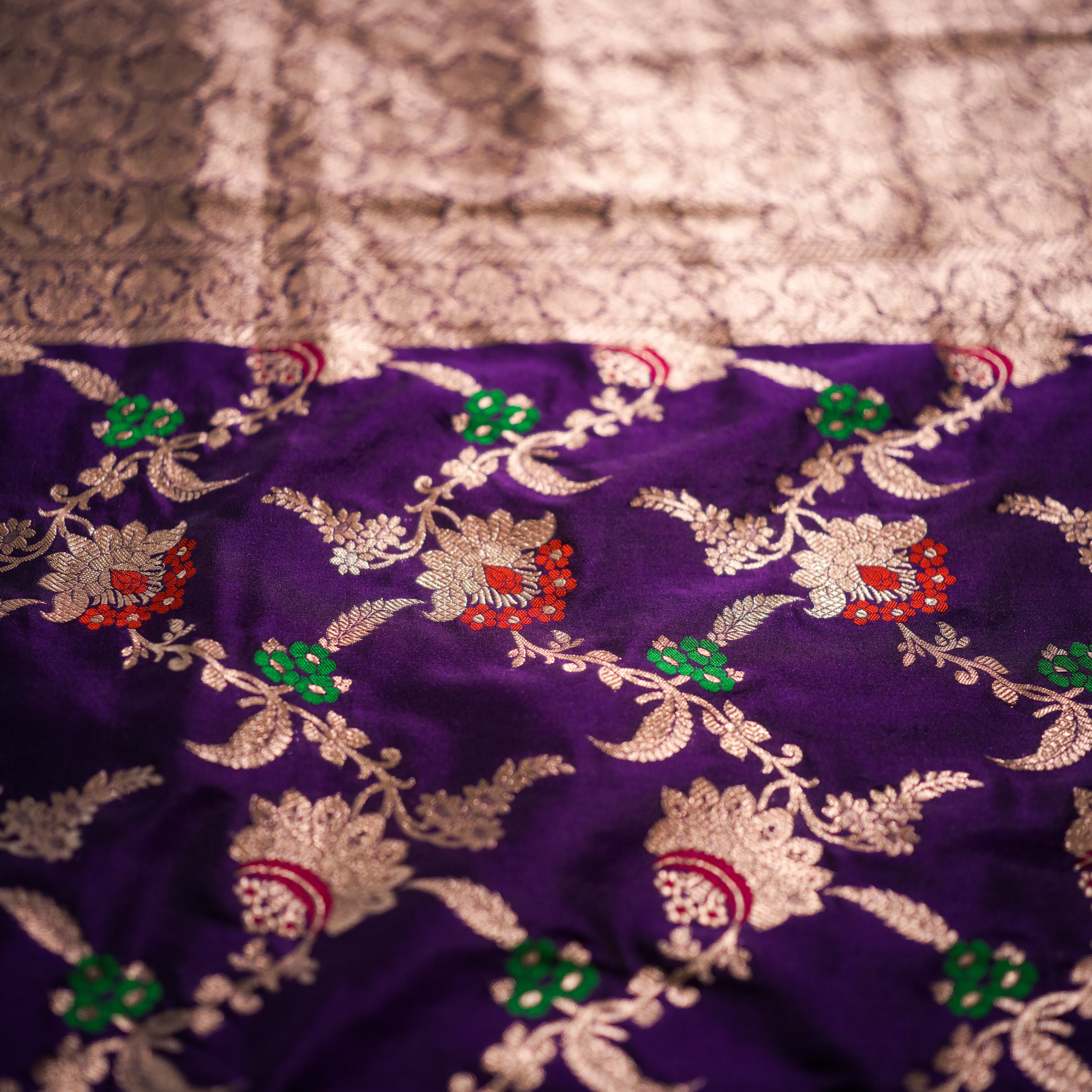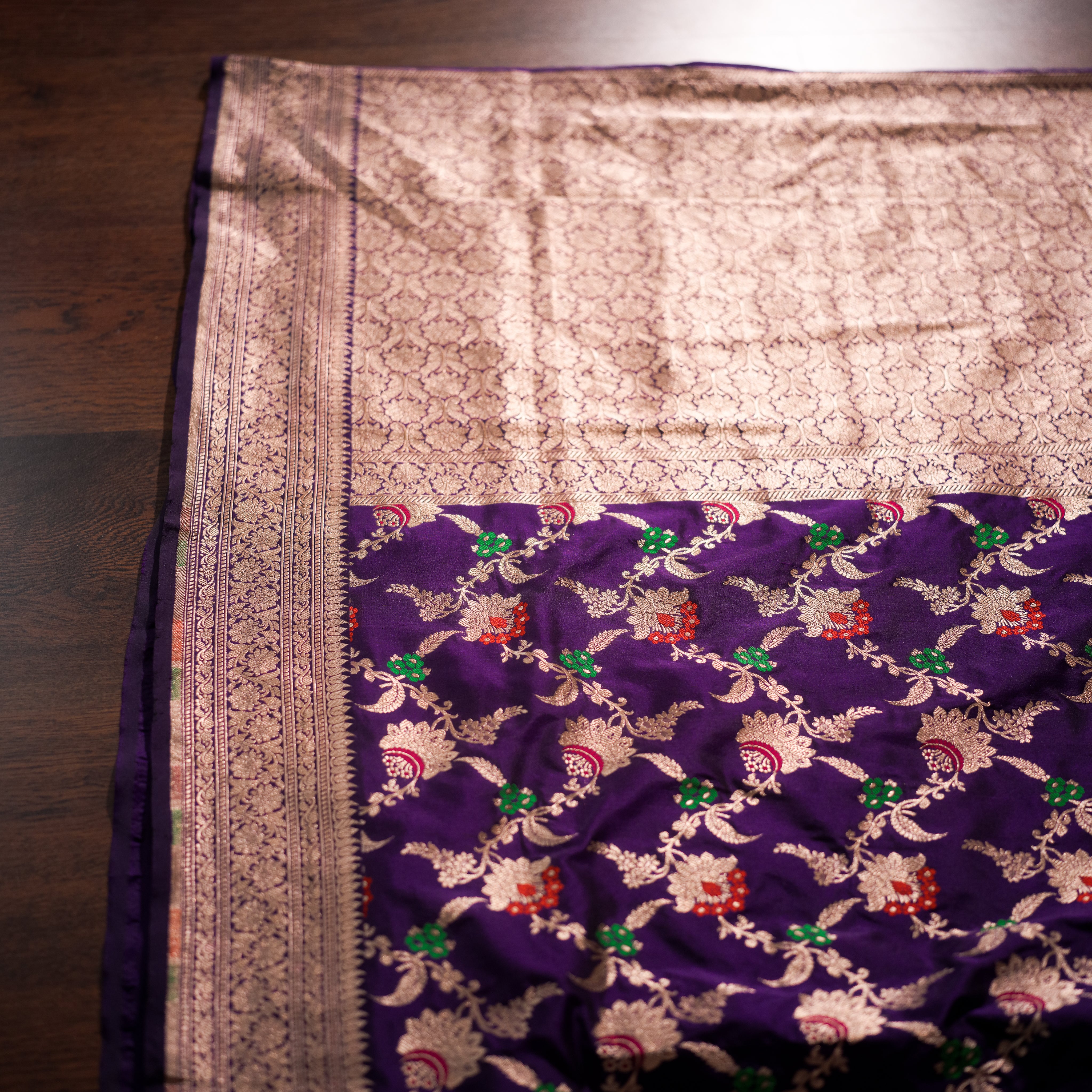 Color – Rich Purple (with multicolor floral highlights and antique gold zari)