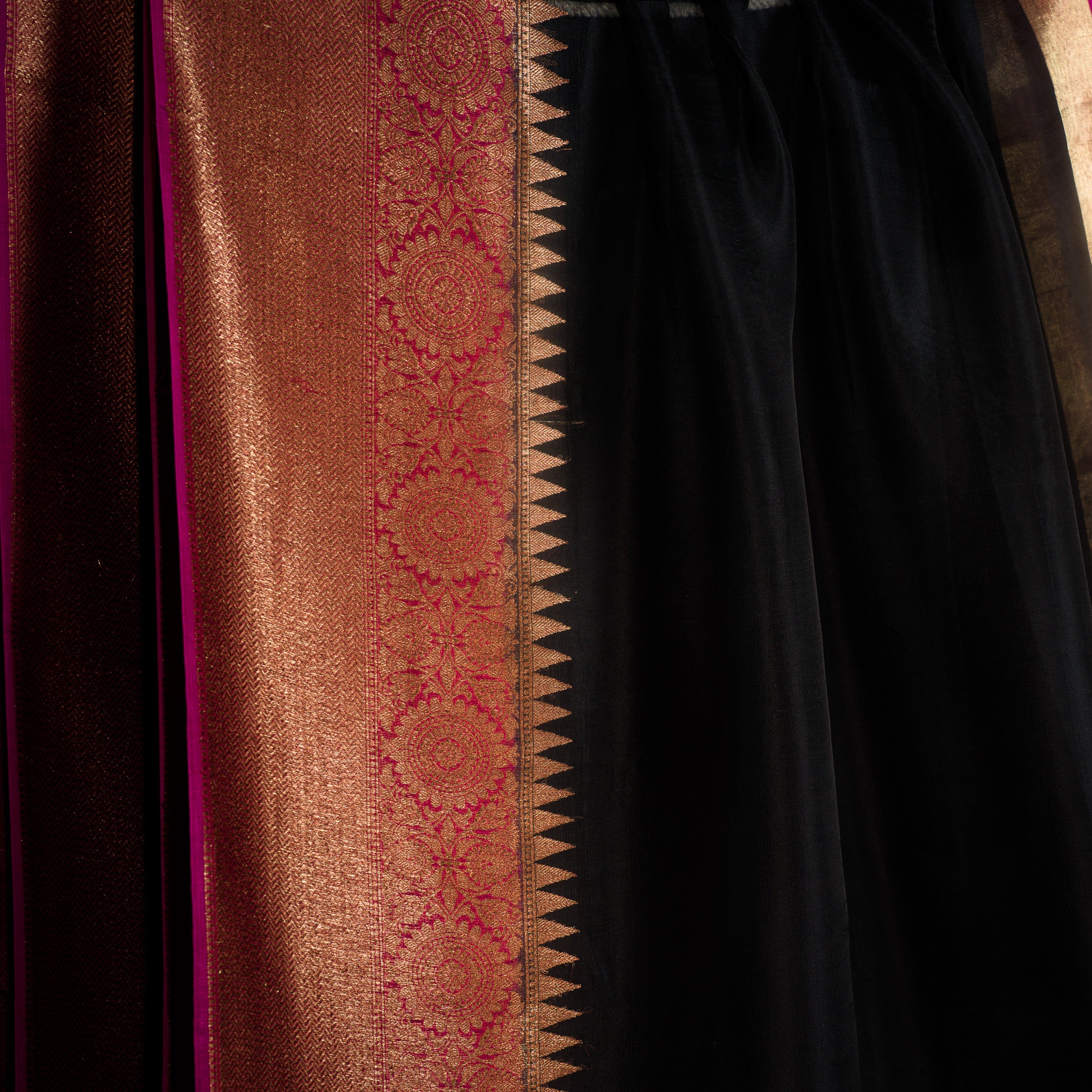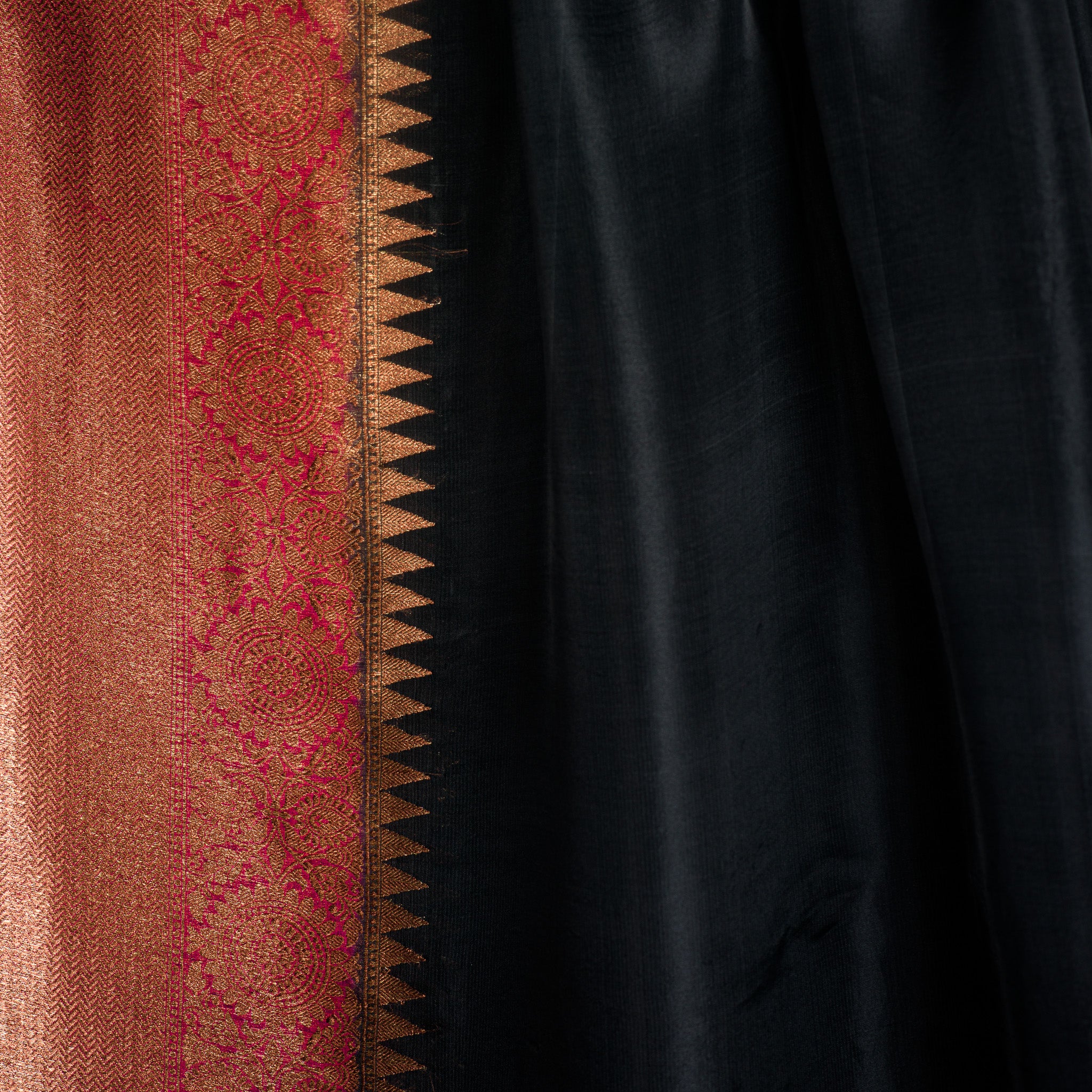 - Weaving technique - Handwoven using the traditional zari (gold/silver thread) technique with silk brocade work.