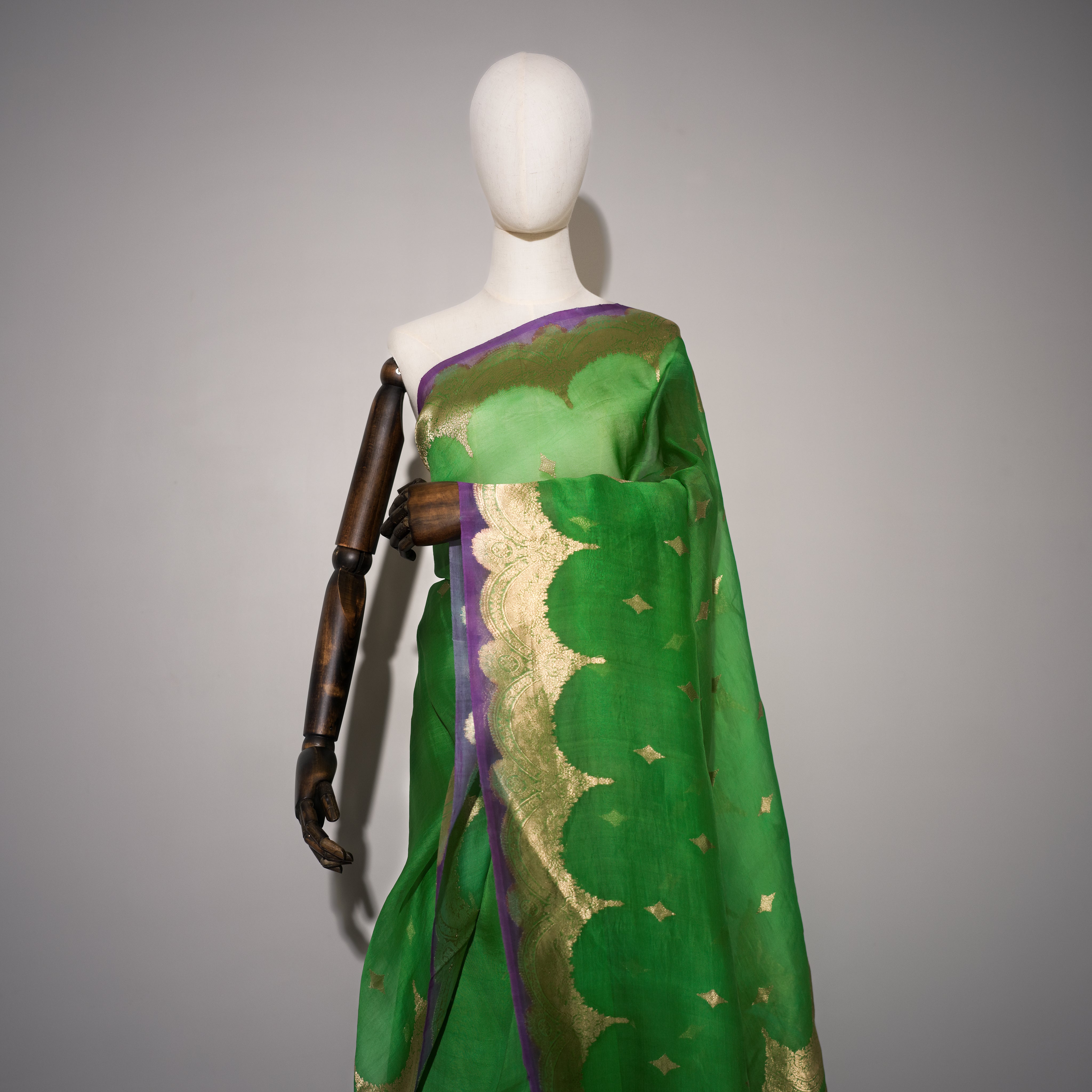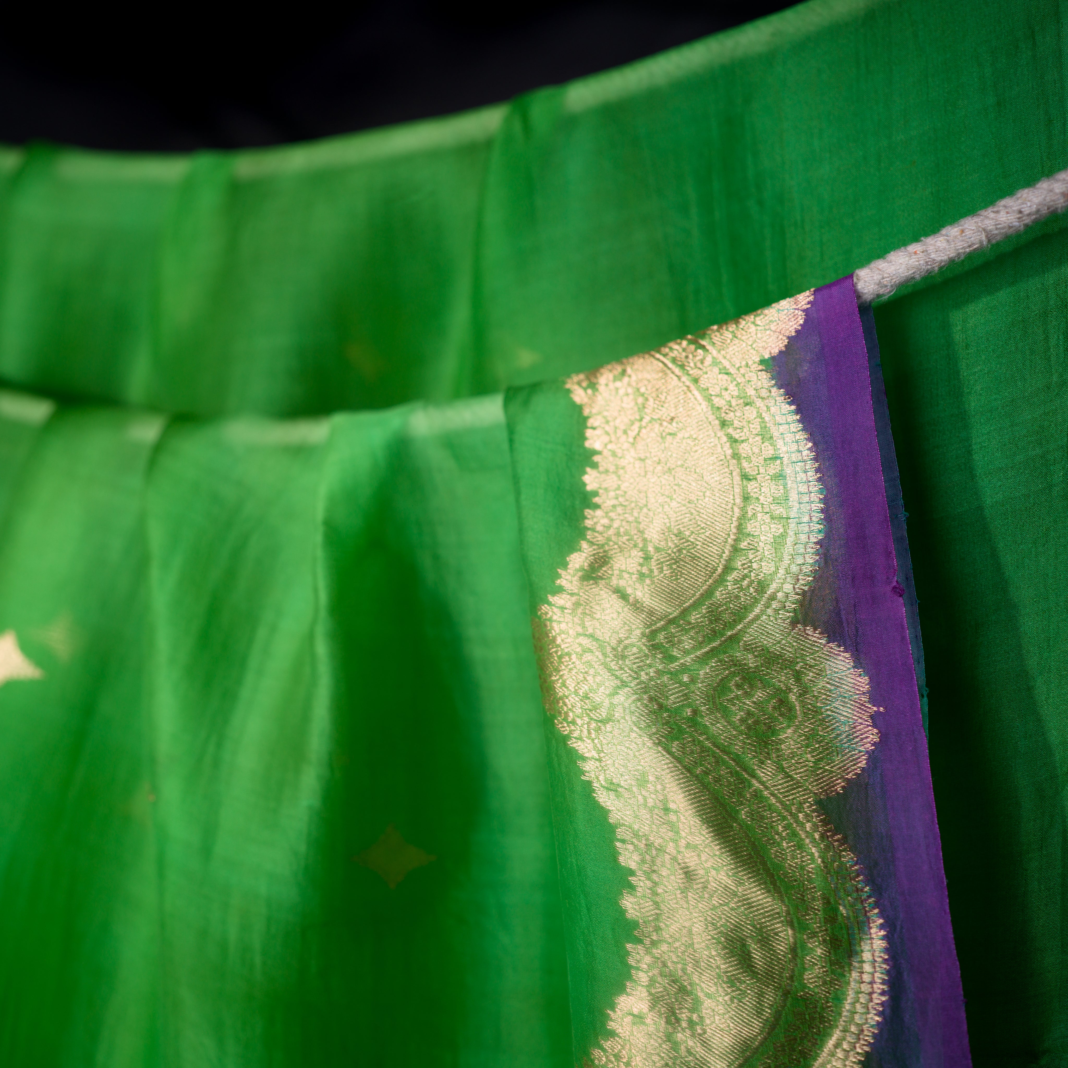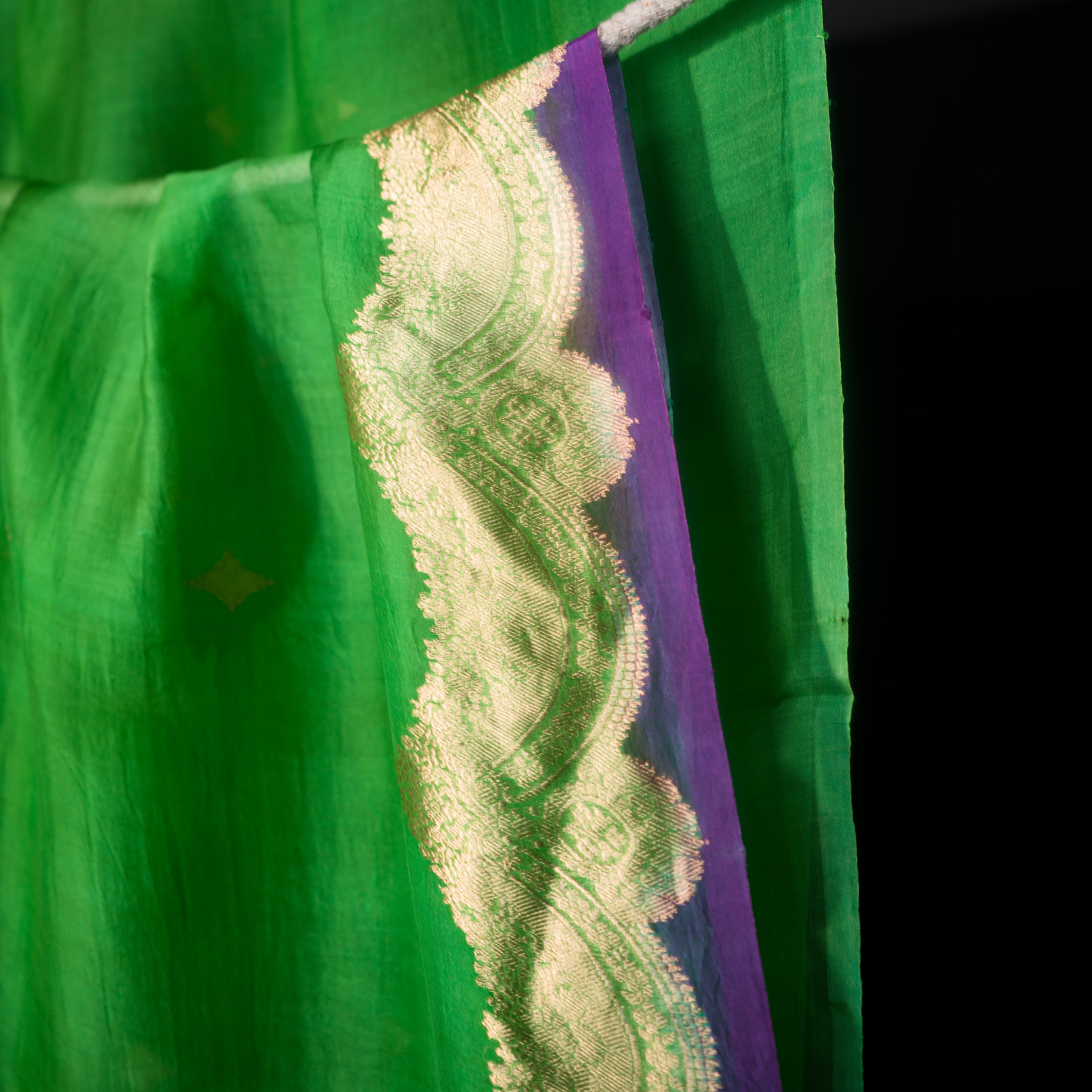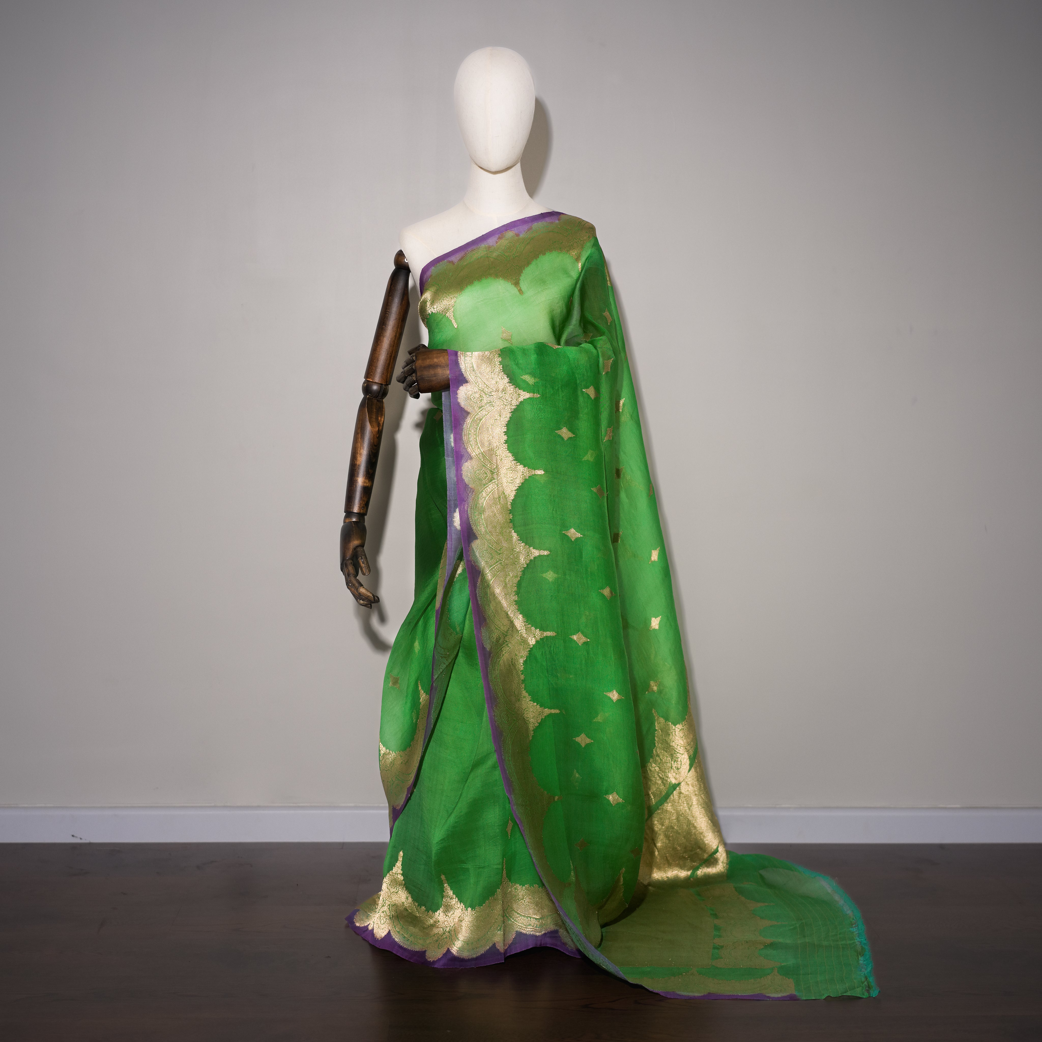 Emerald Radiance – Pure Banarasi Kora Silk Saree
