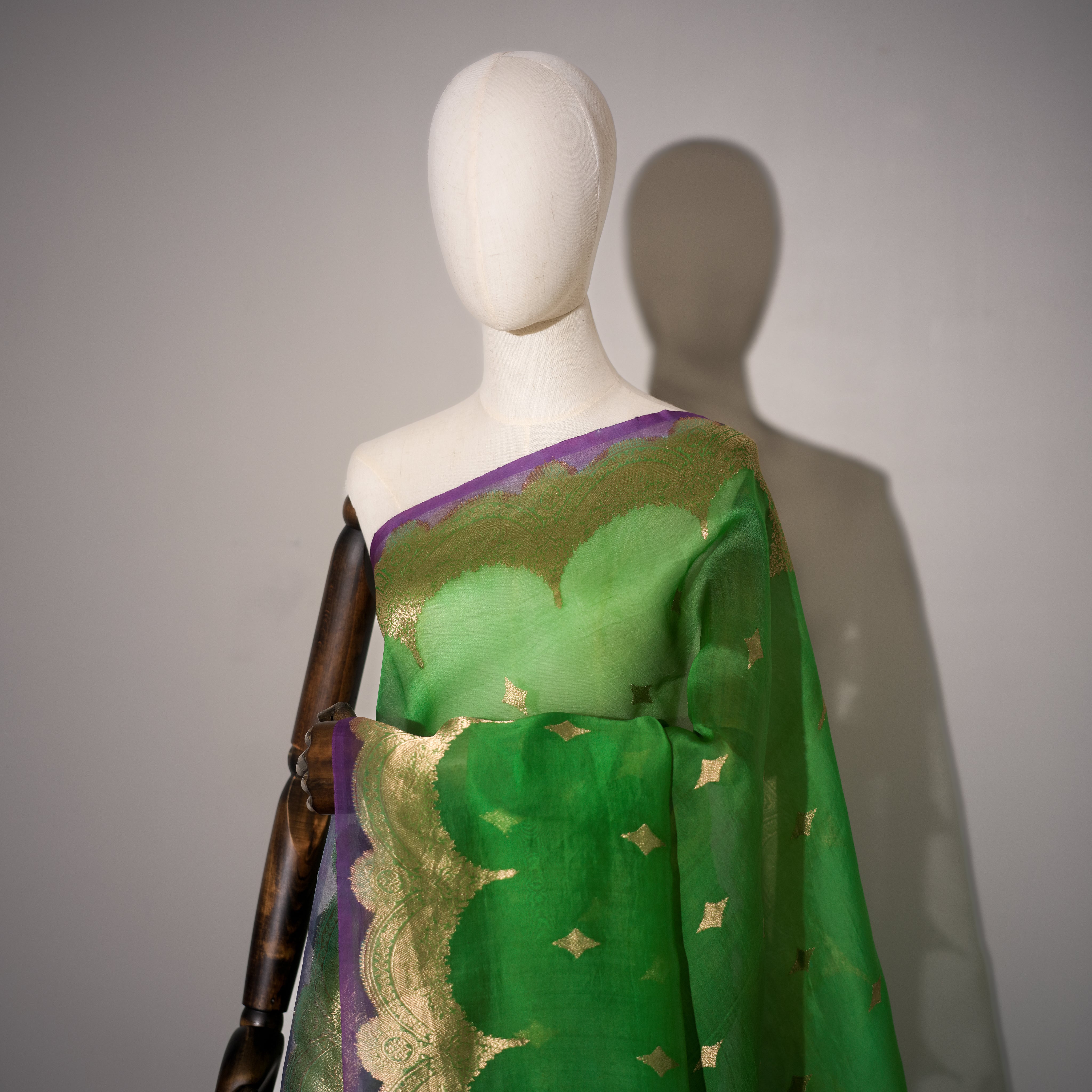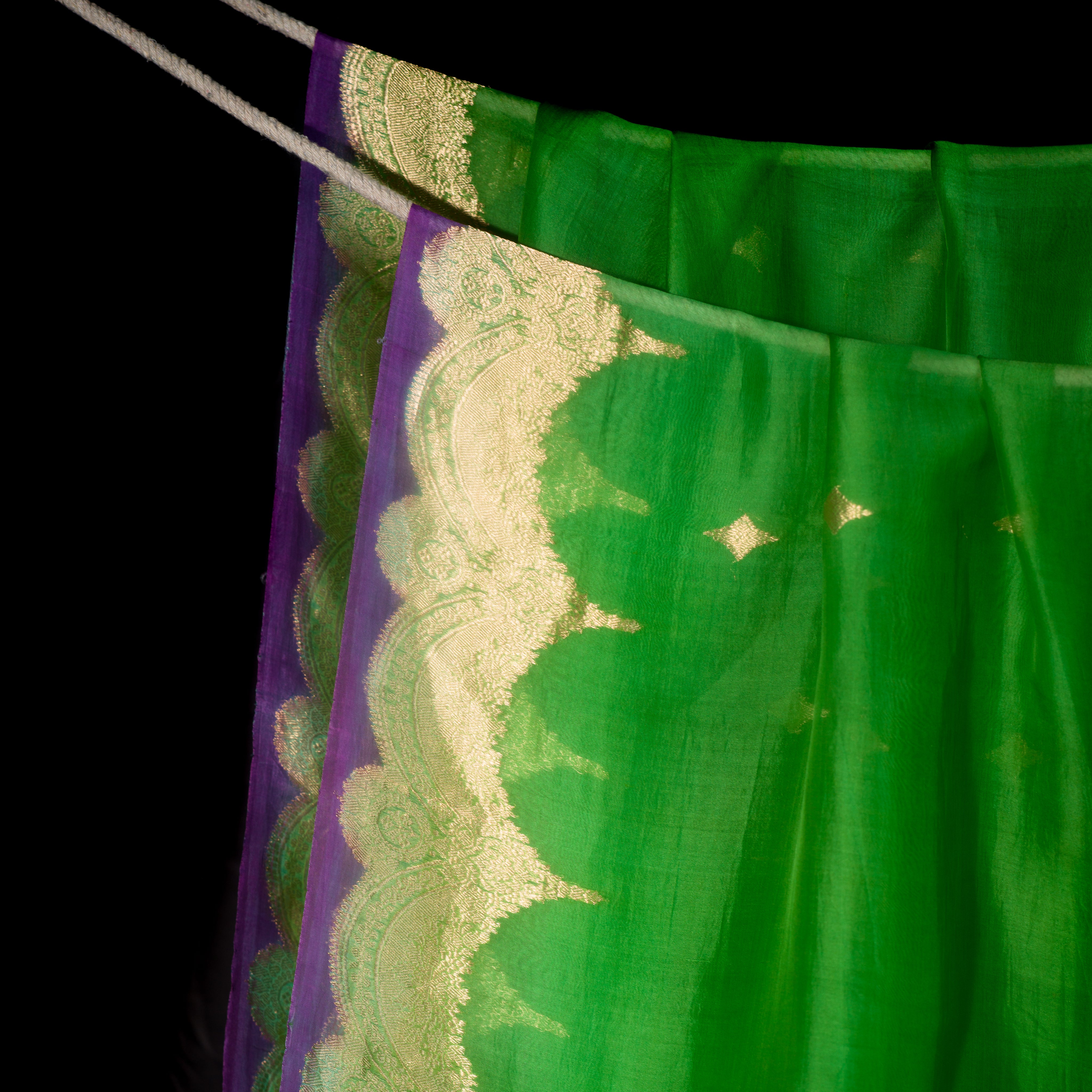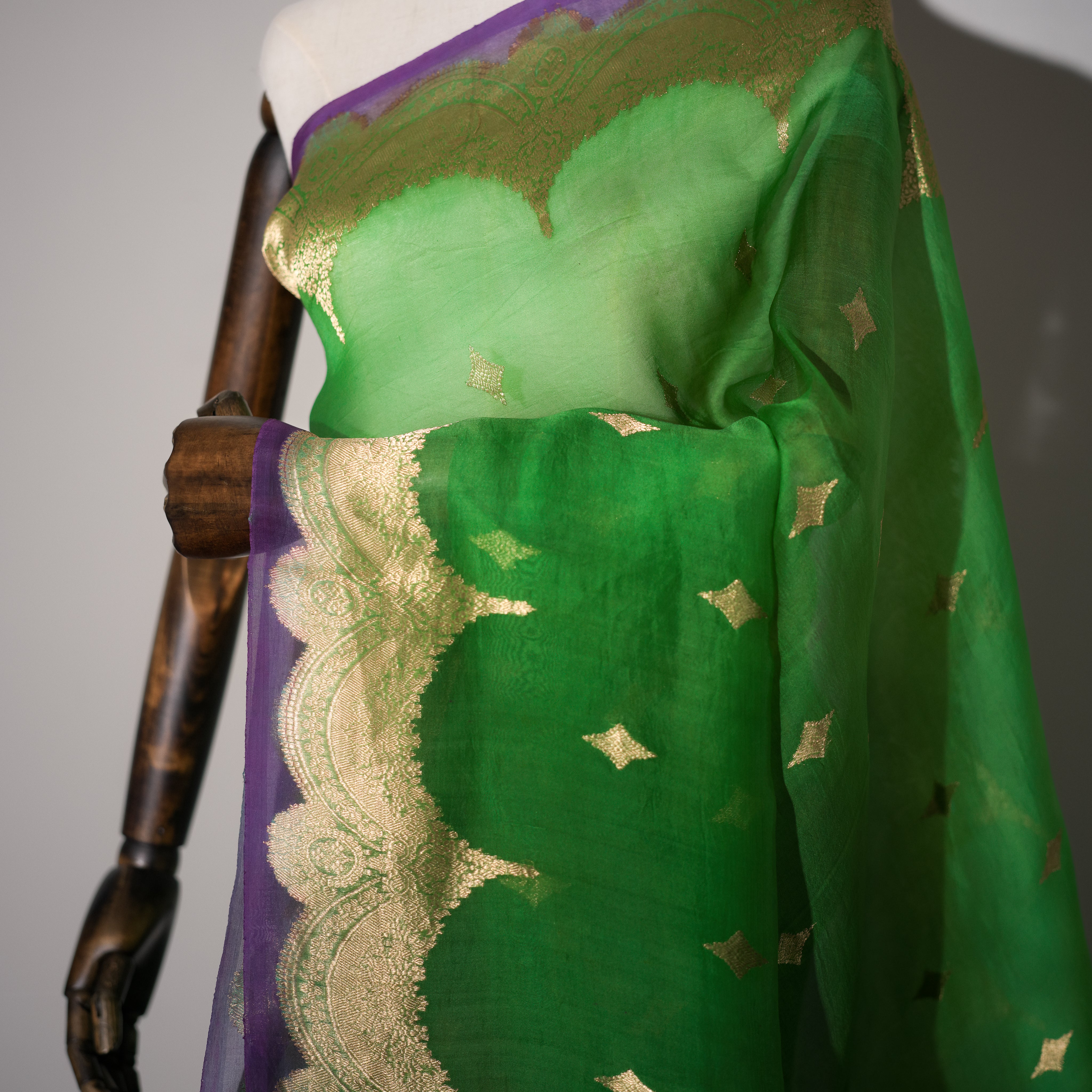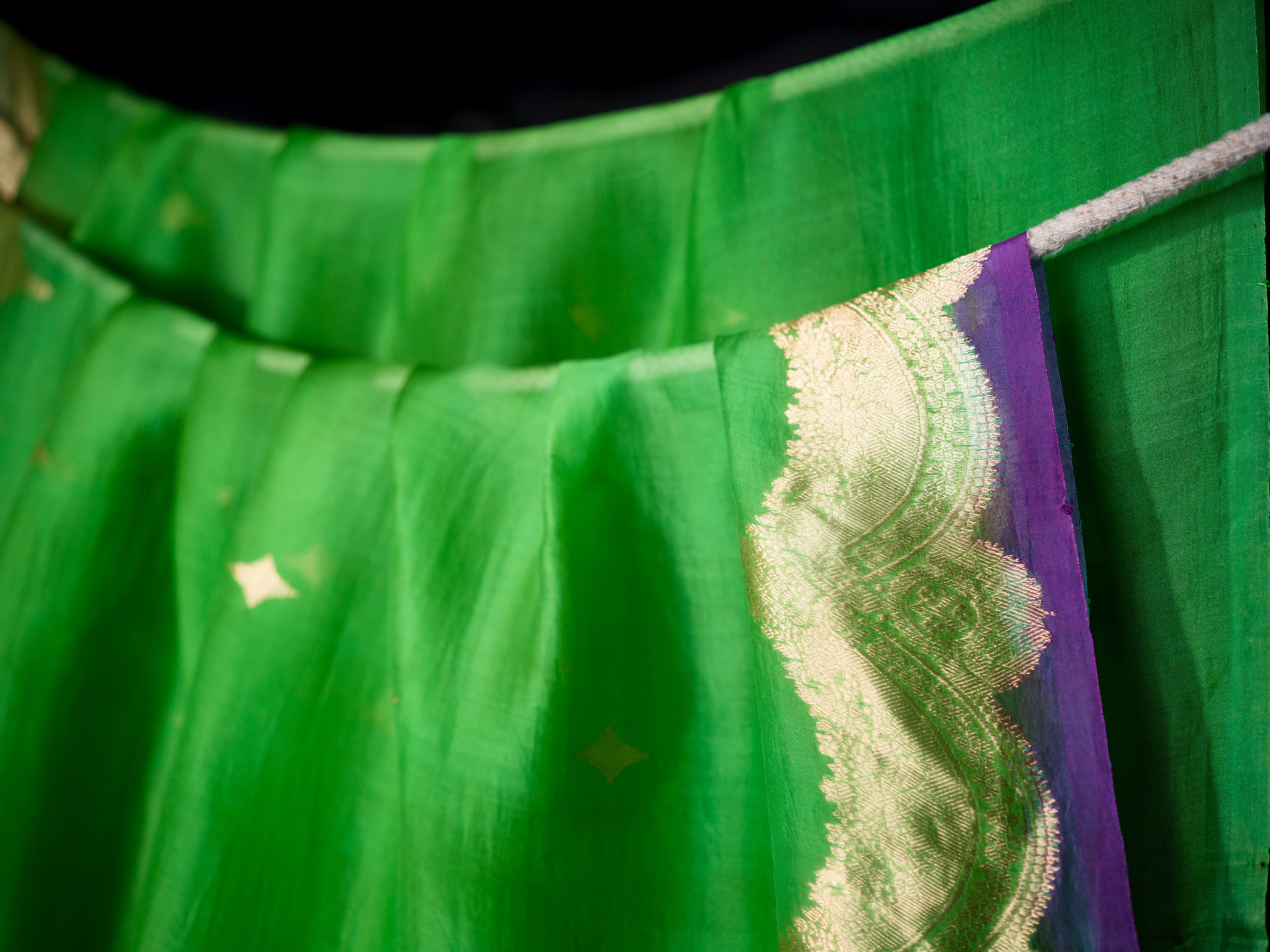 Emerald Radiance – Pure Banarasi Kora Silk Saree