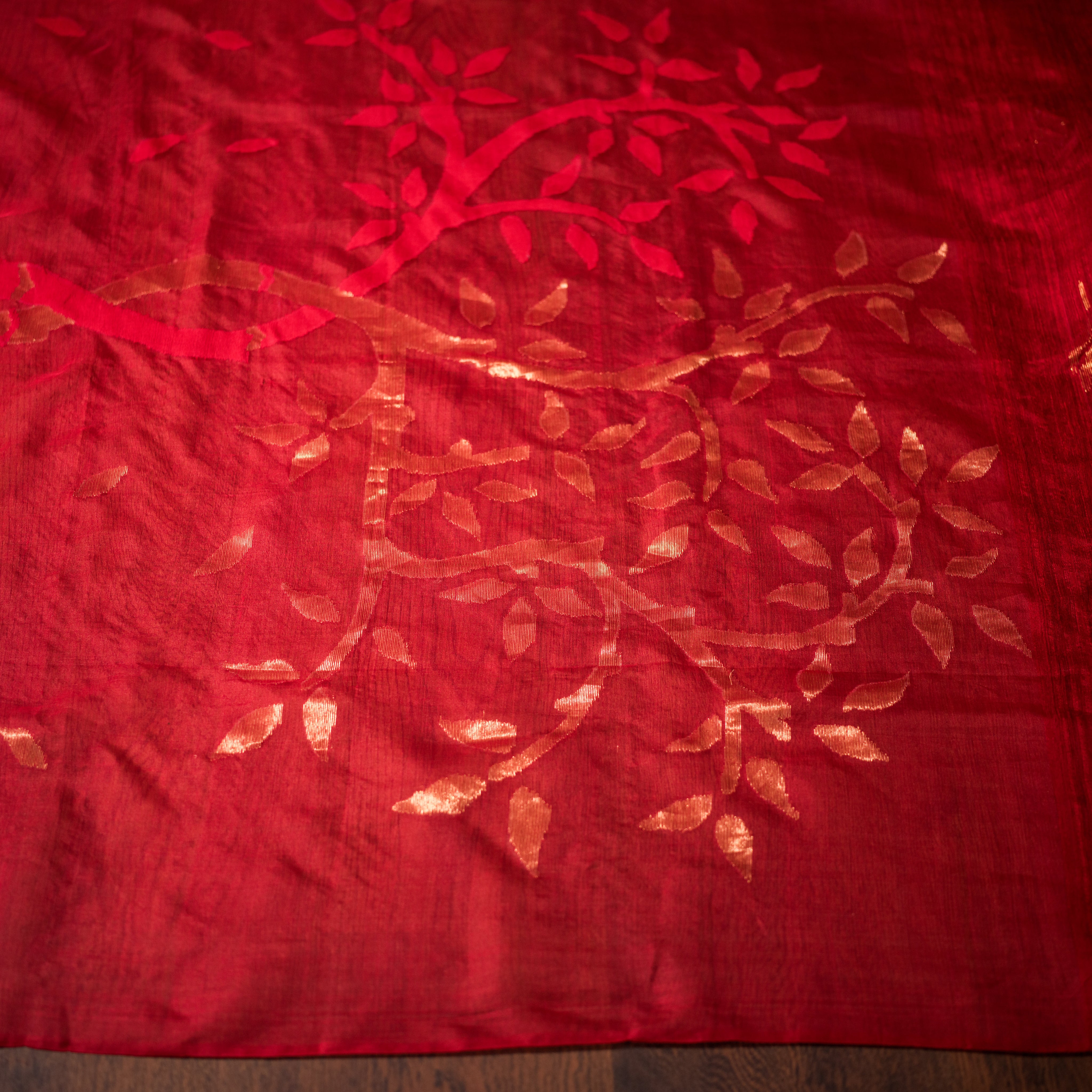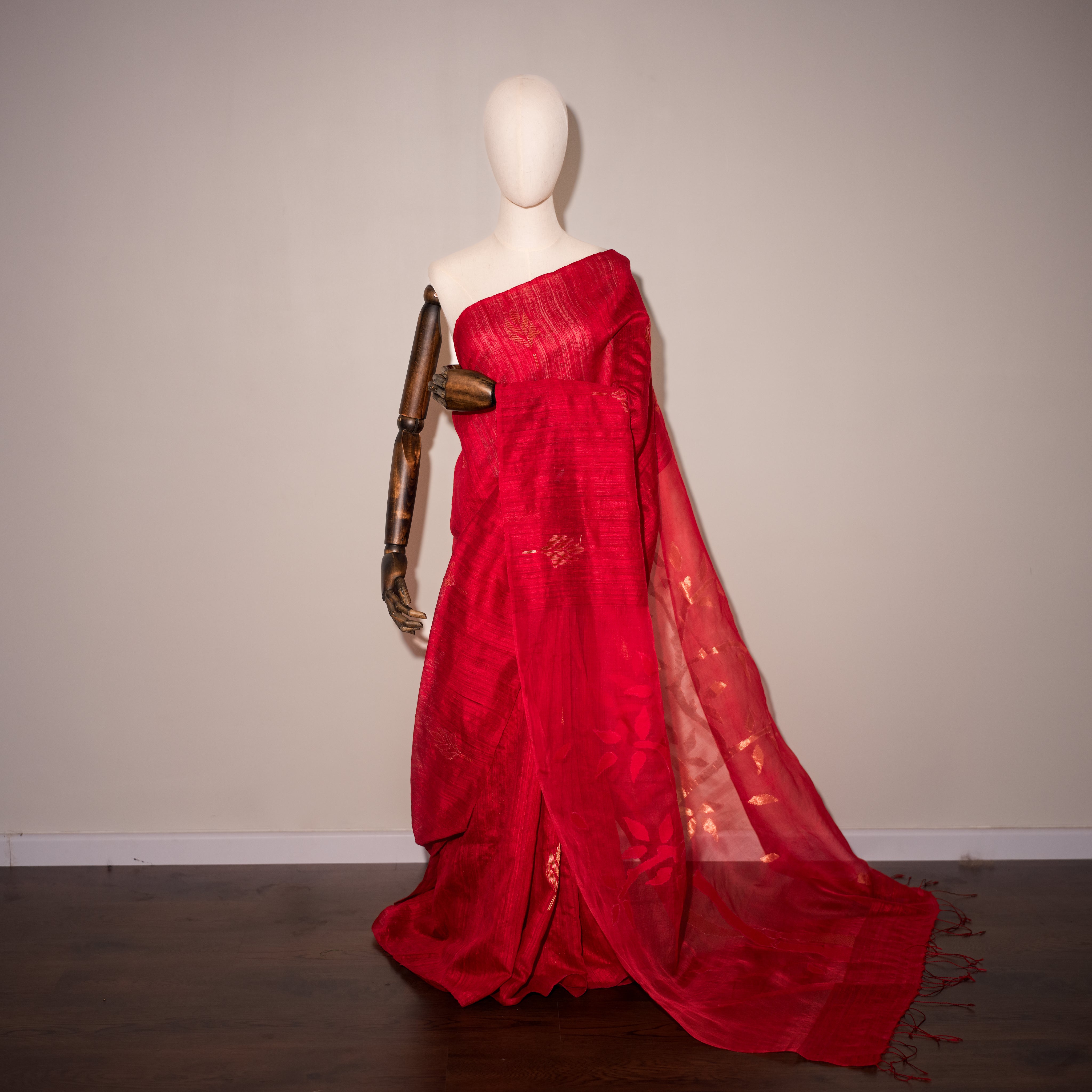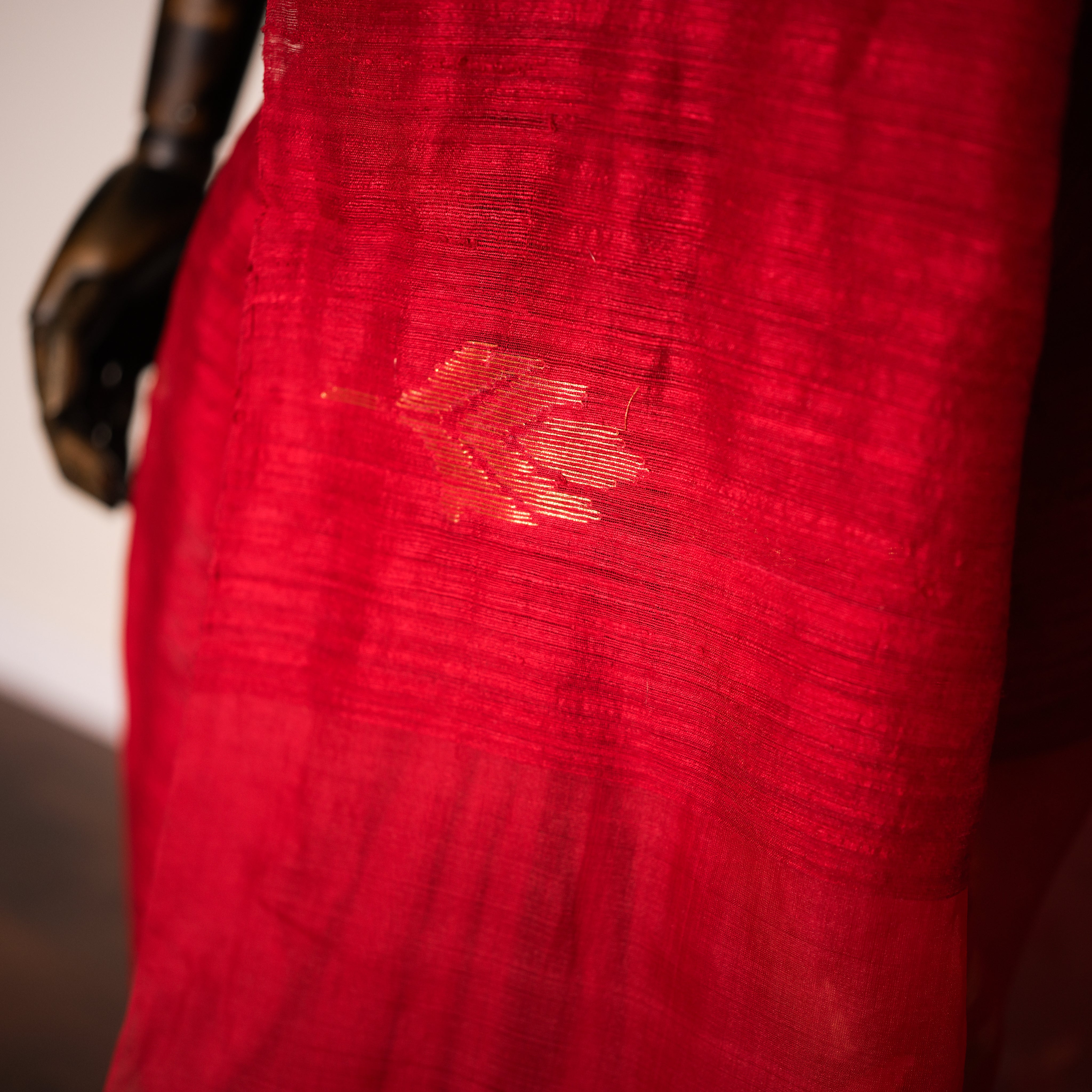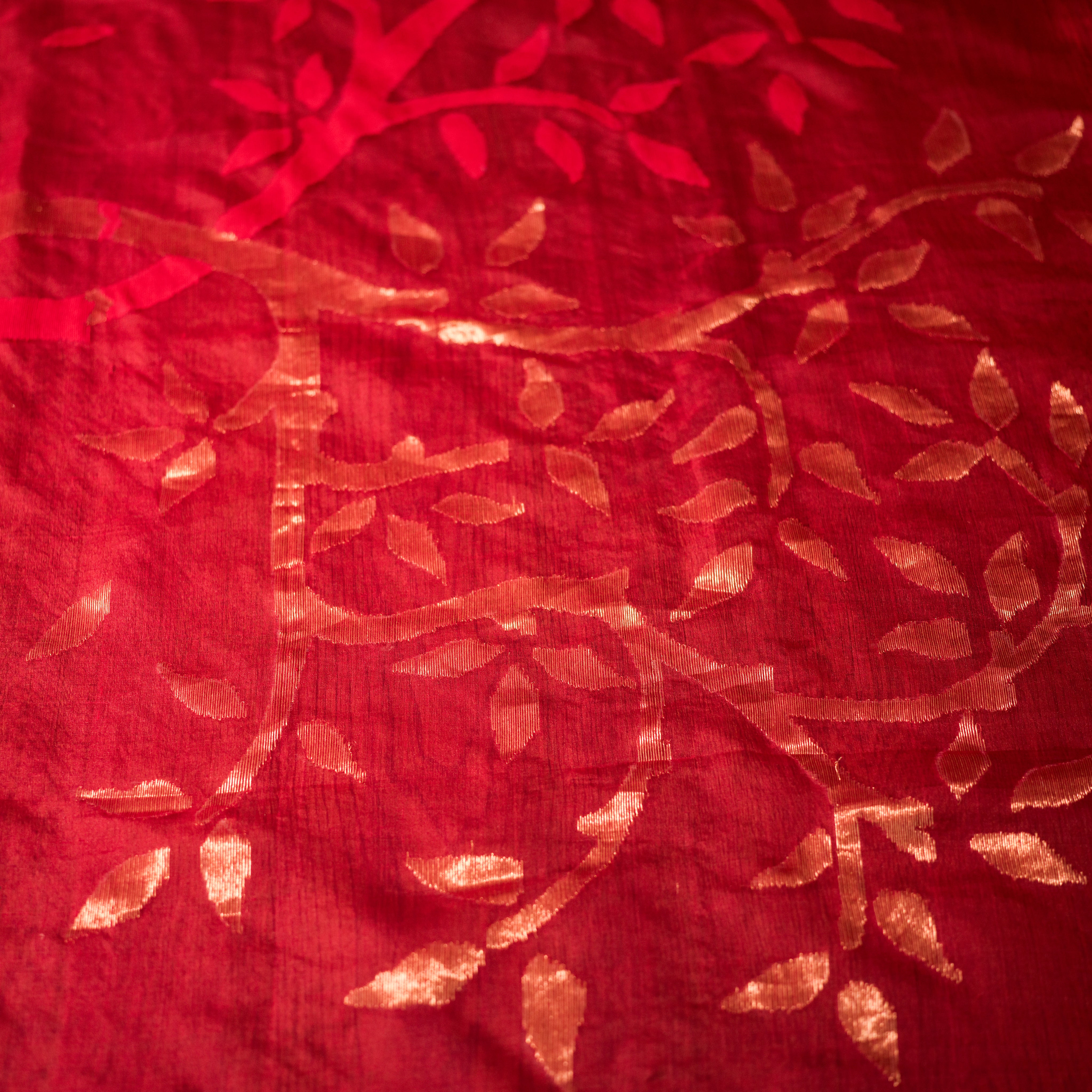Eternal Blossom in Red – A Pure Matka Silk Jamdaani Saree with Muslin Pallu
