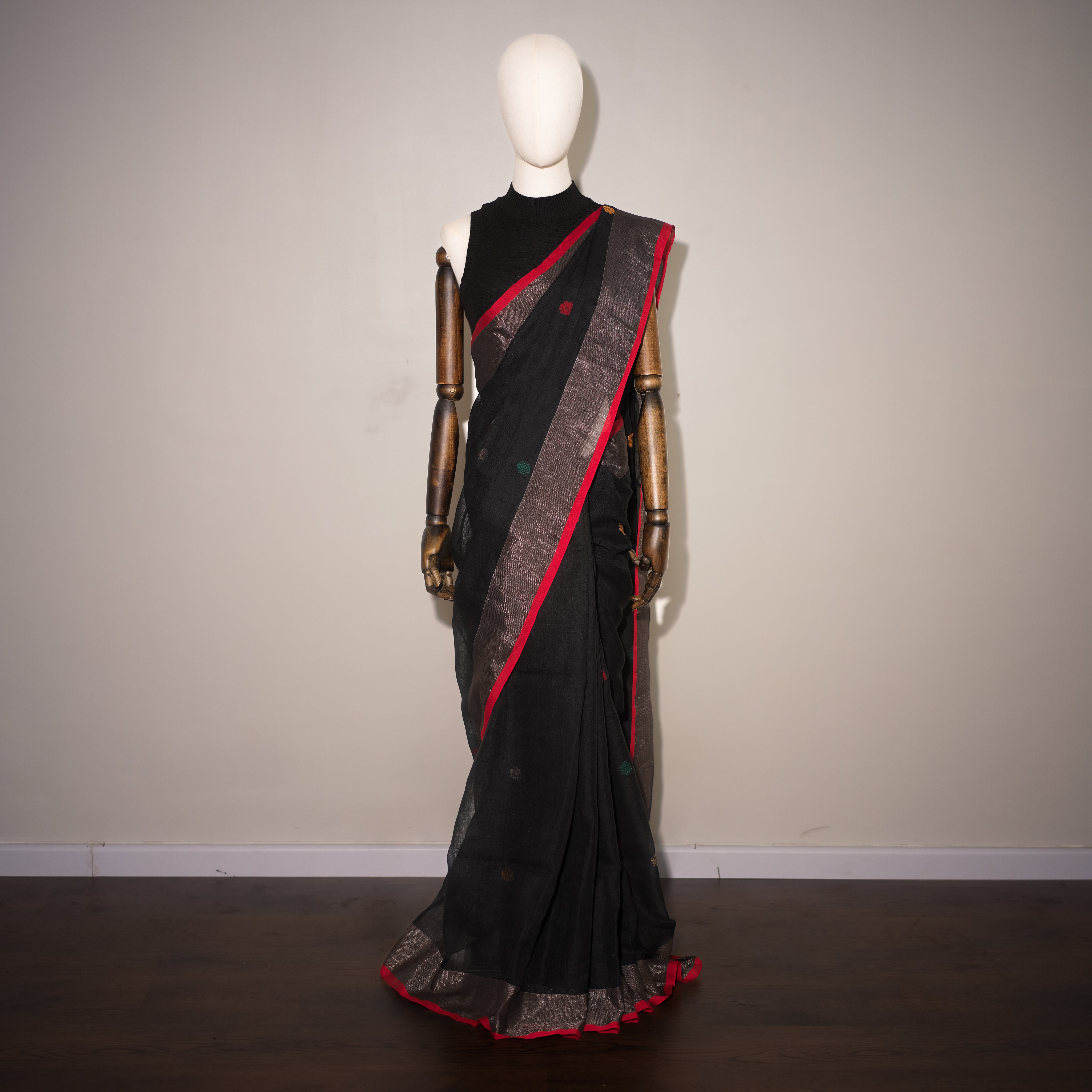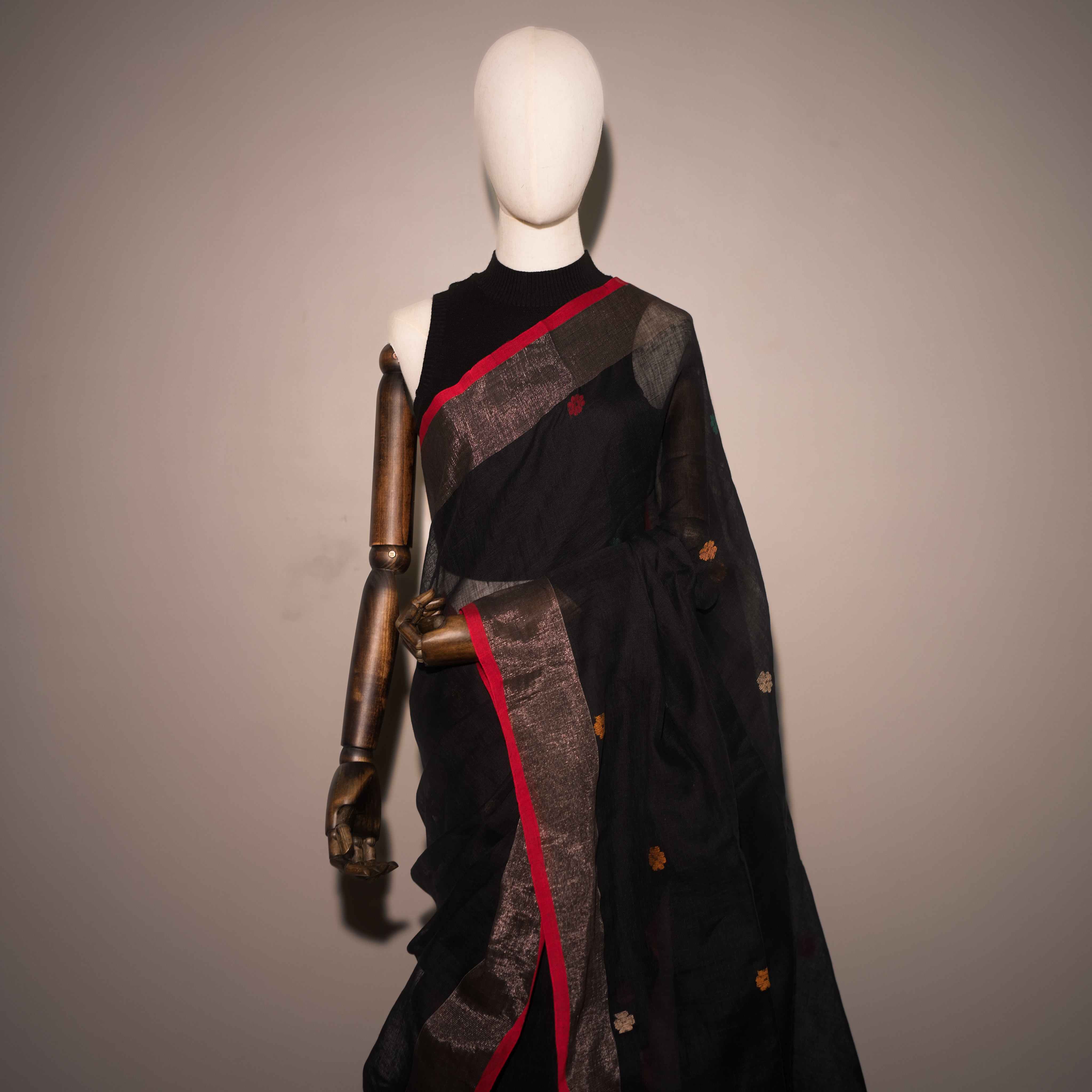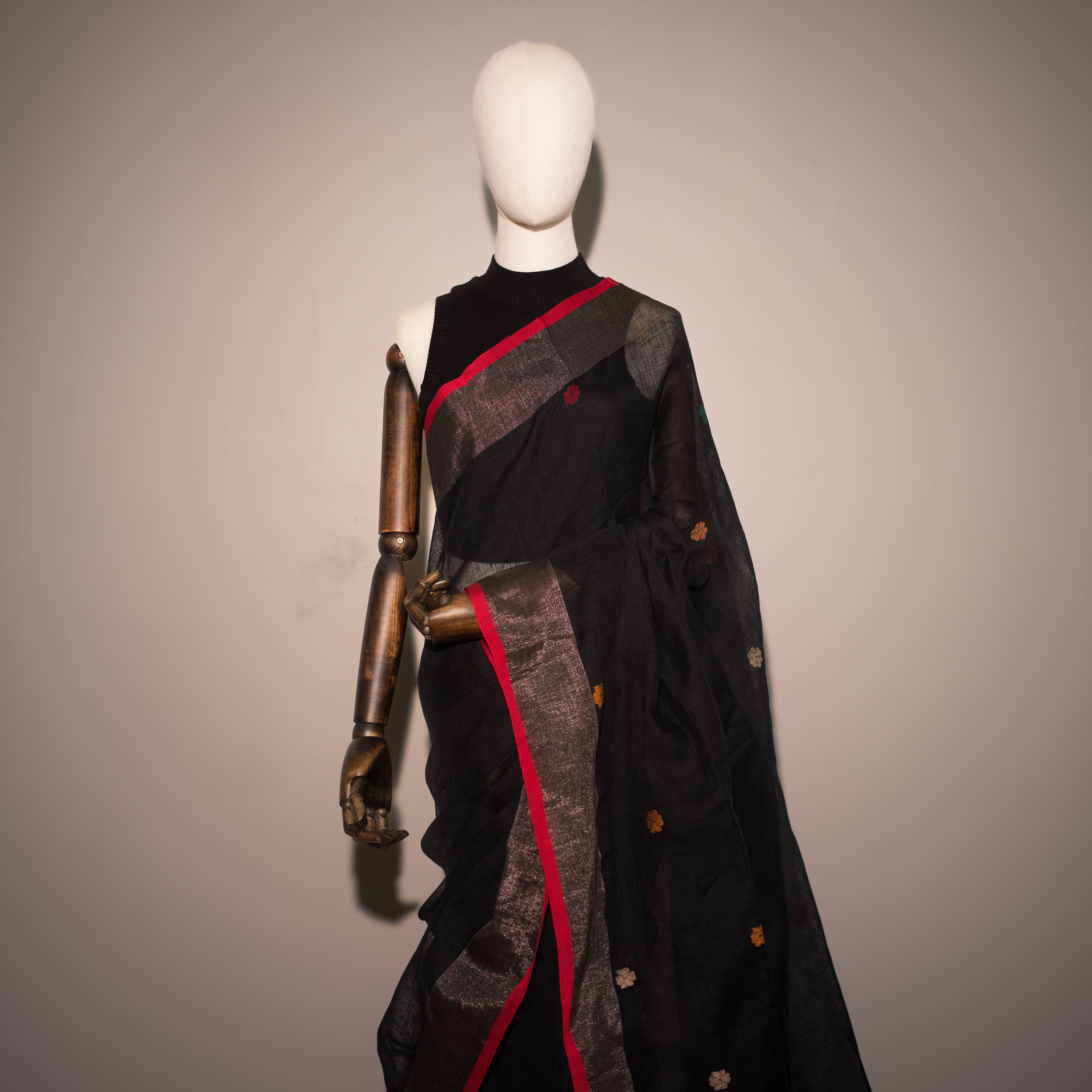 “Eternal Noir” - Black Linen Jamdani Saree with Dark Silver Border