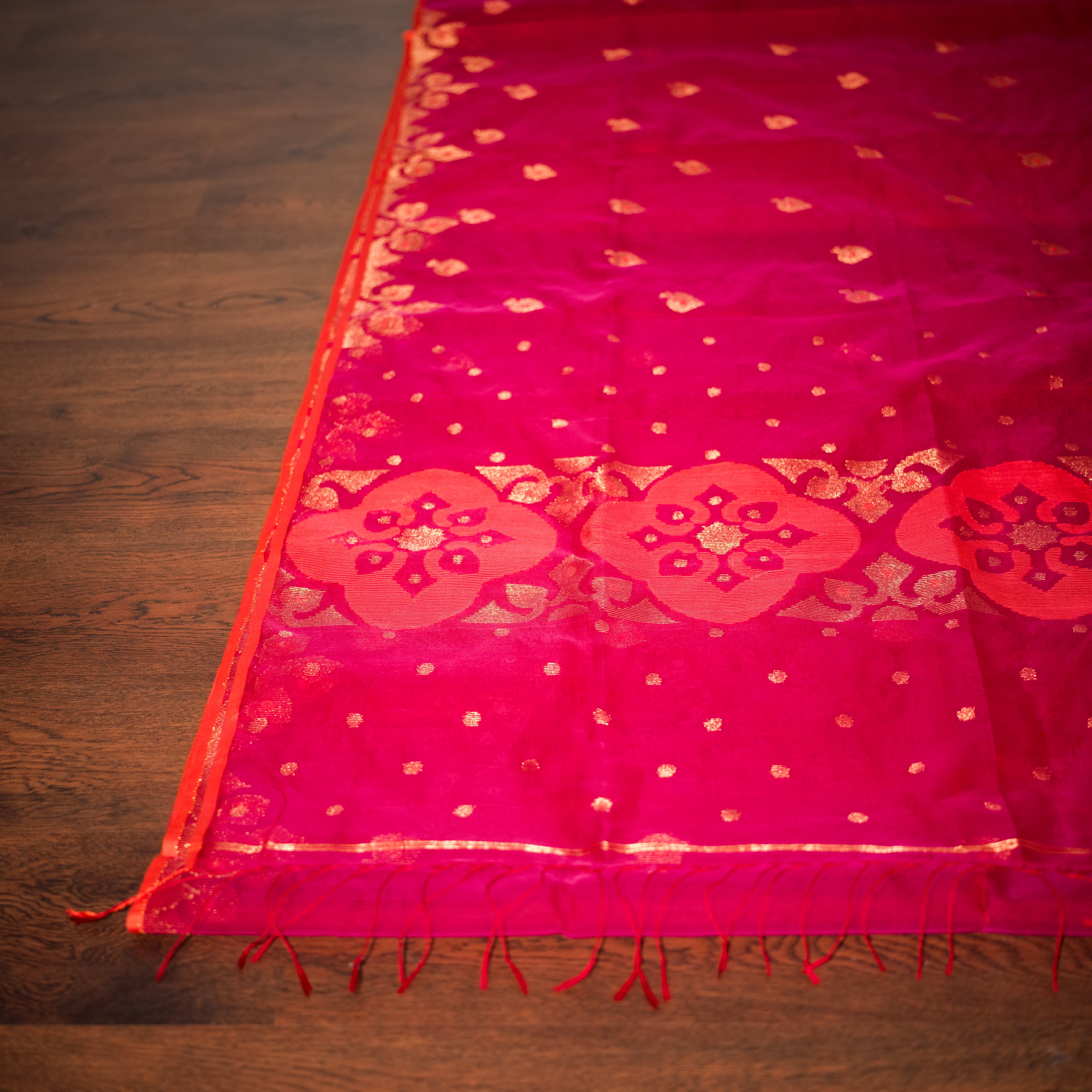 • Weaving Technique - Traditional Jamdani weaving, crafted entirely by hand on a loom