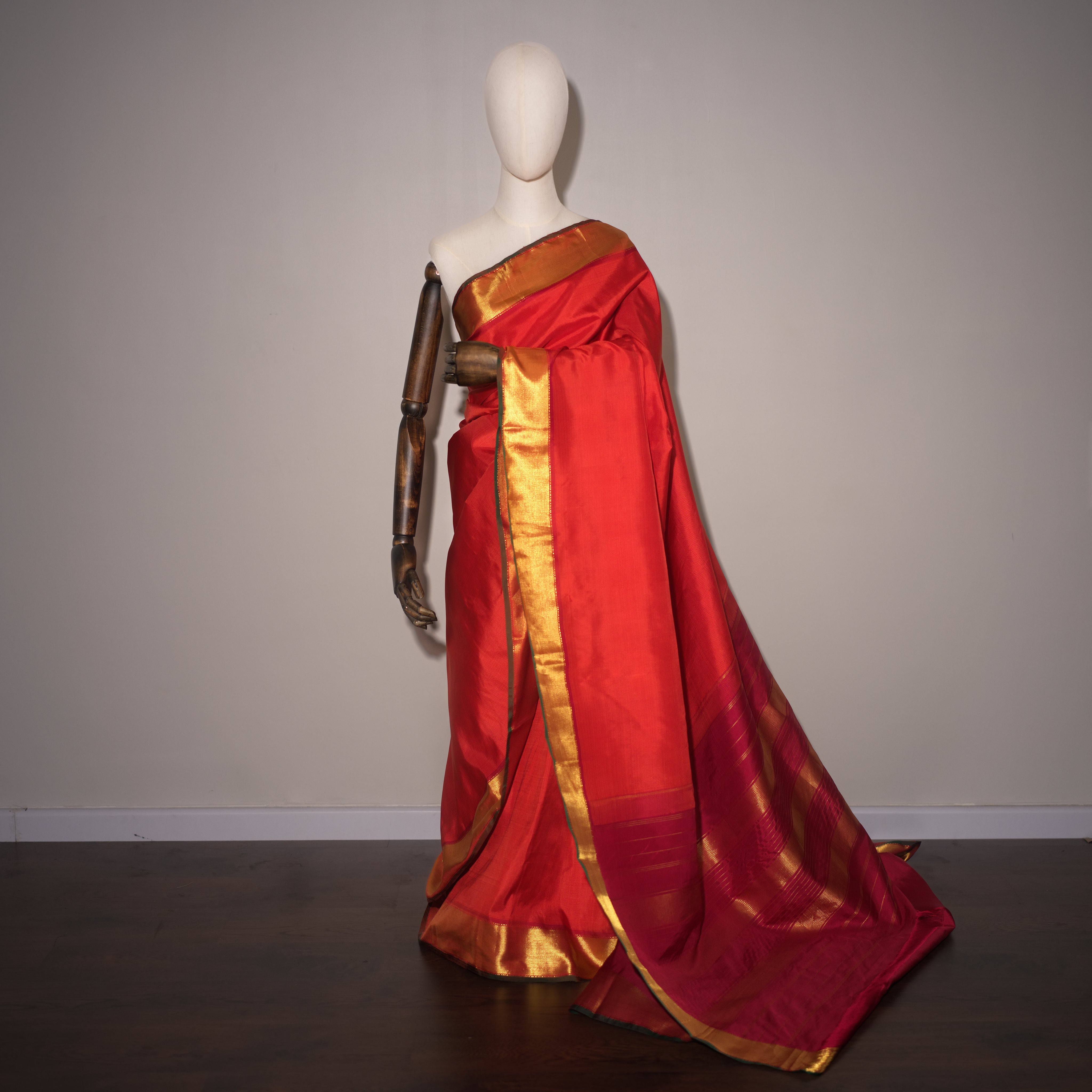 Flame of Tradition – The Dark Orange Pure Kanjivaram Silk Sare