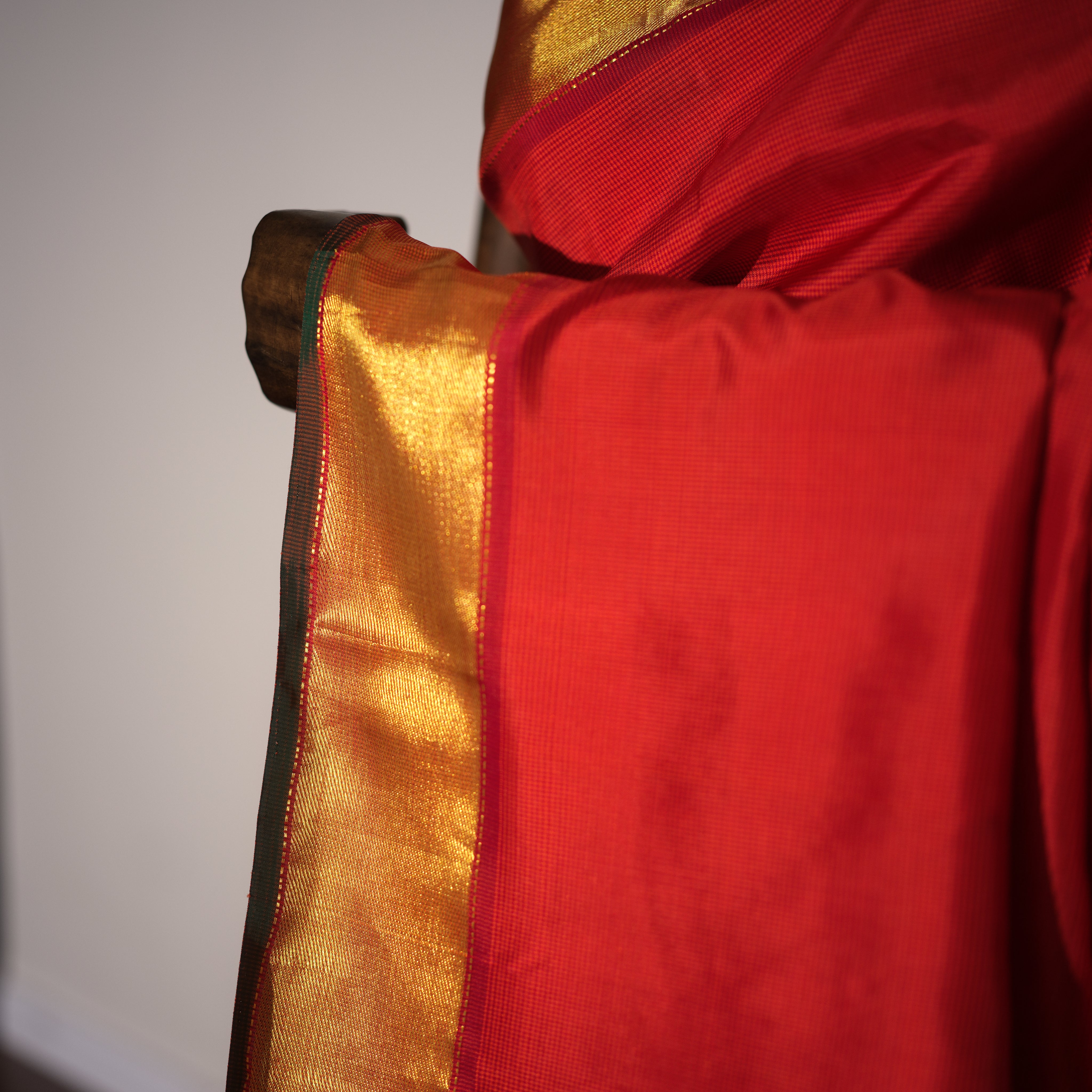 Weaving Technique – Handwoven Kanjivaram with zari border and checks in the body