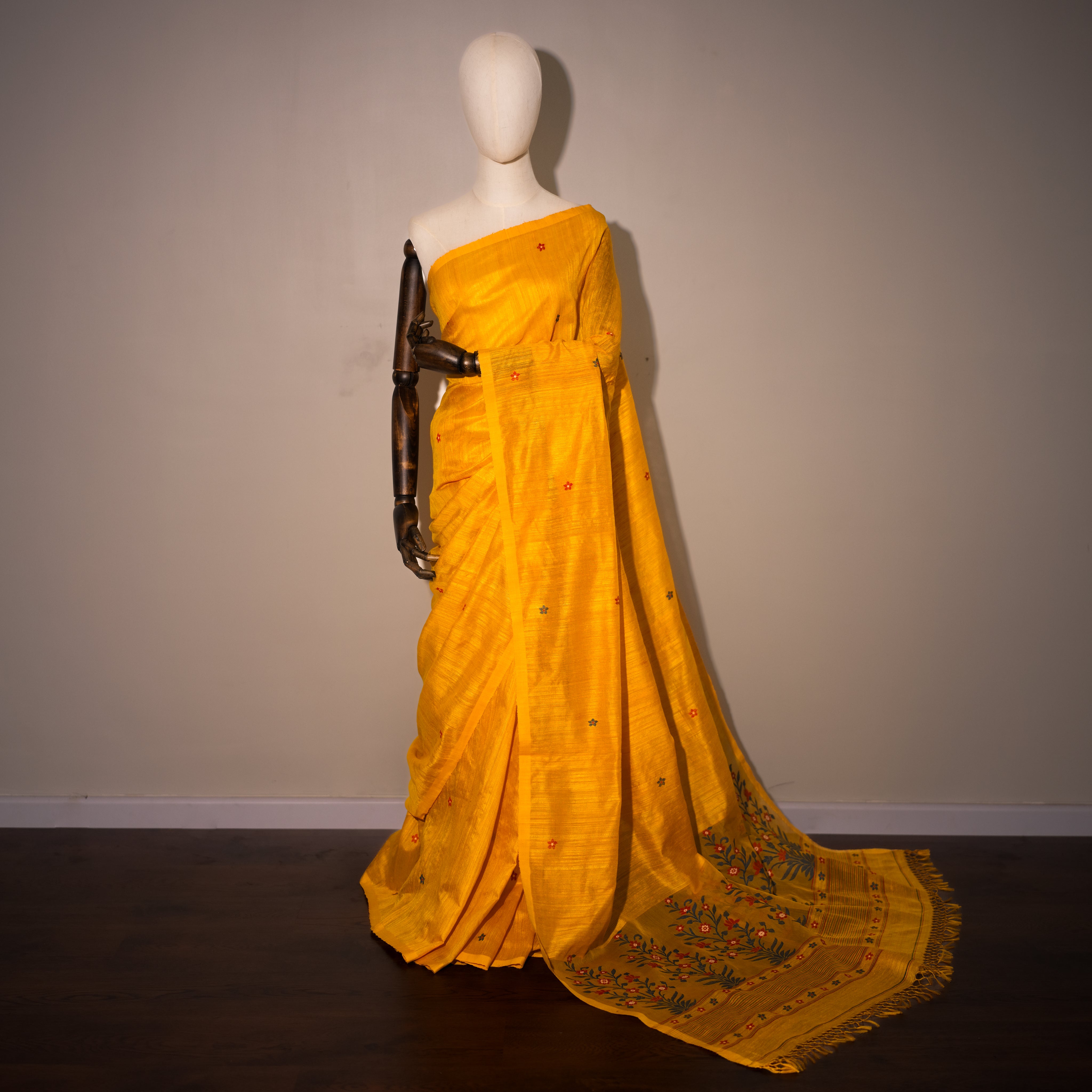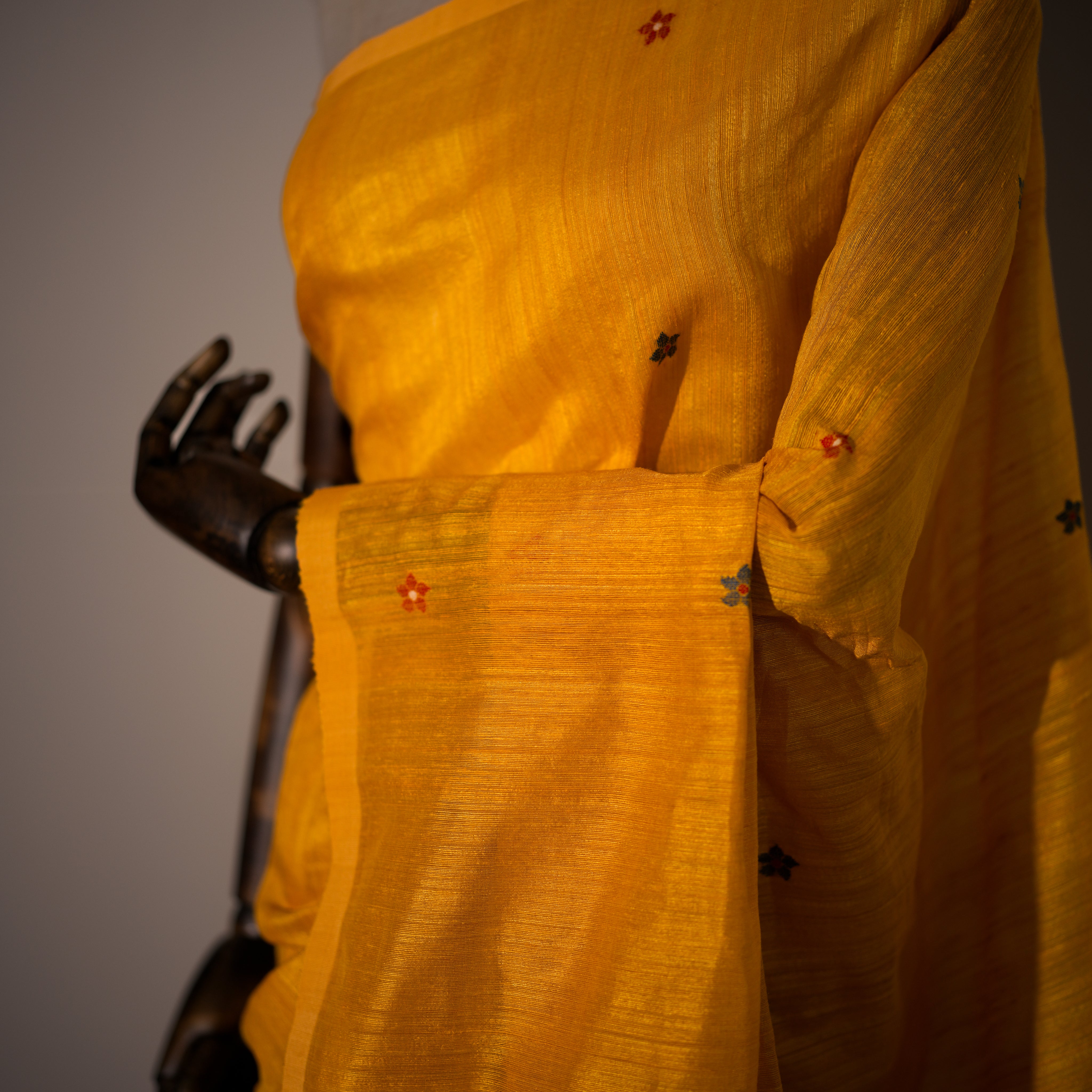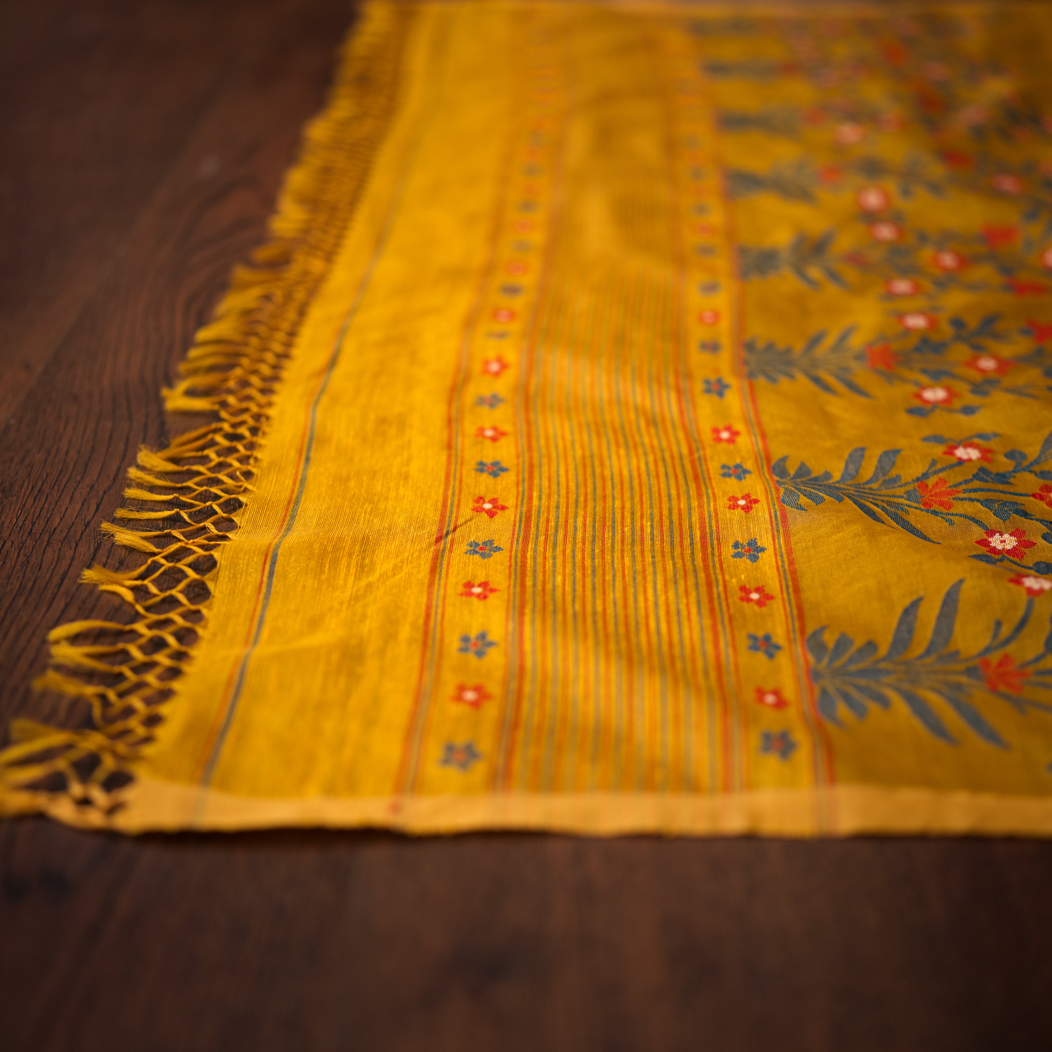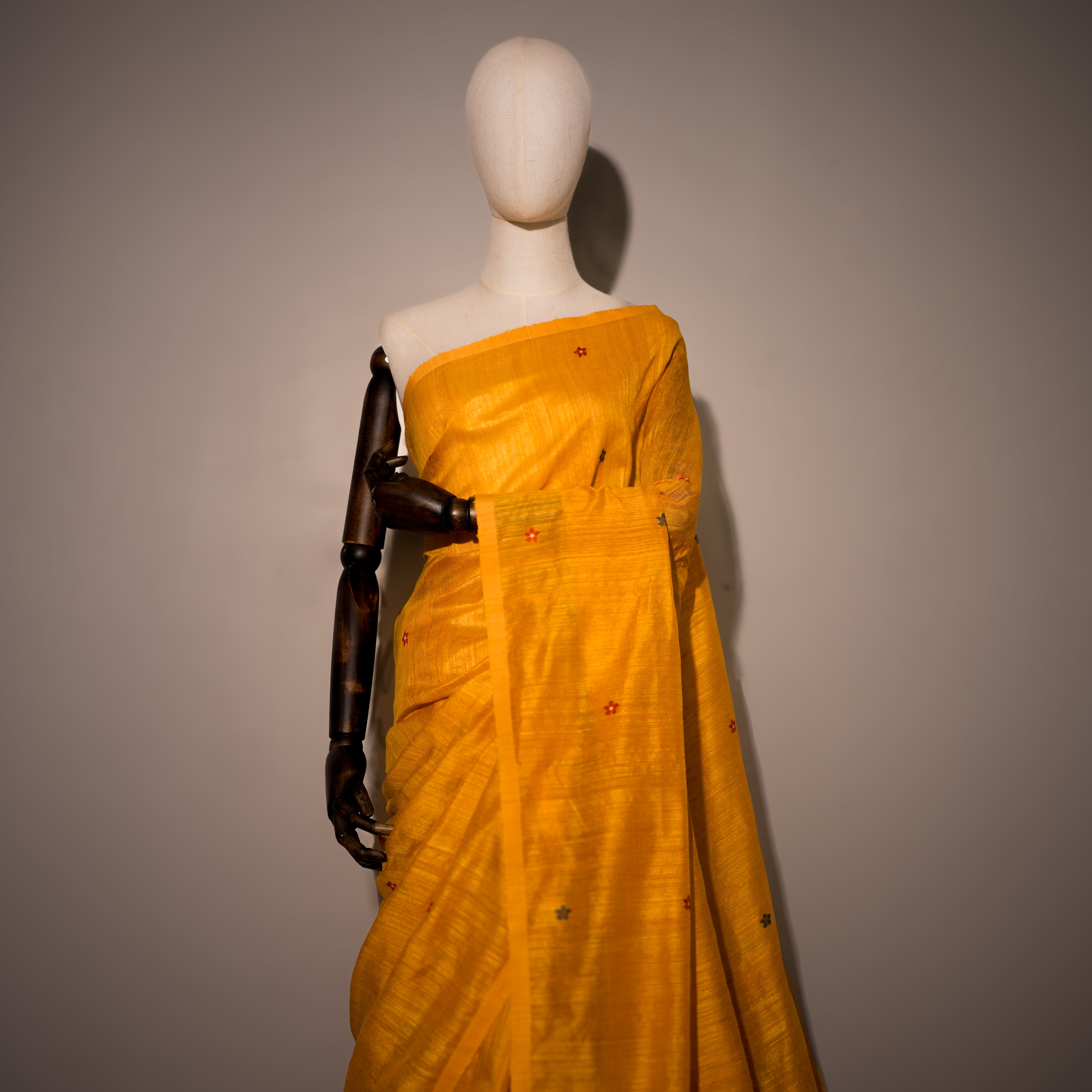 Golden Bloom, Handwoven Yellow Jamdani Matka Silk Saree