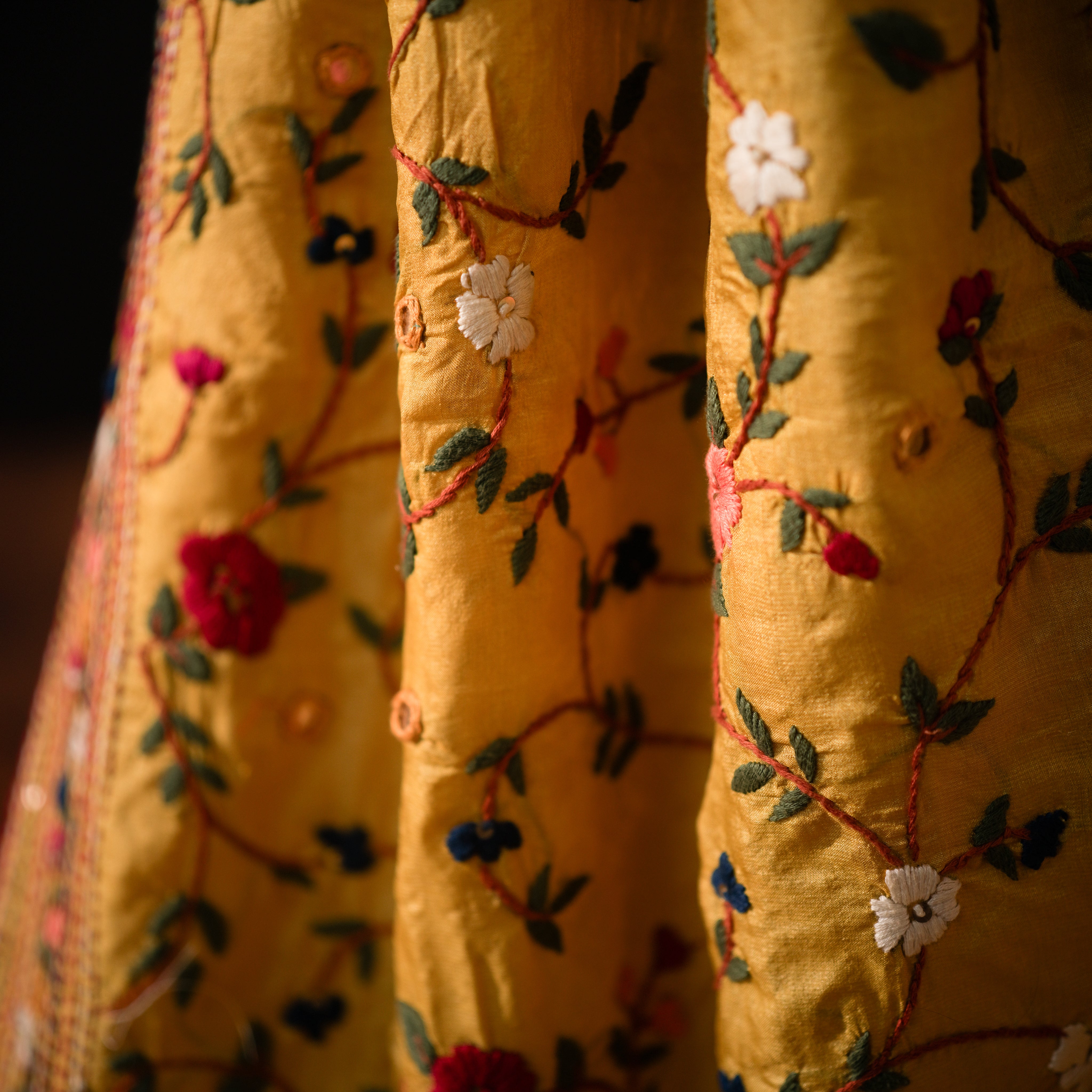 Care Instructions: Dry clean only. Store in a muslin cloth to preserve the natural sheen of silk and keep embroidery safe from moisture and sunlight.