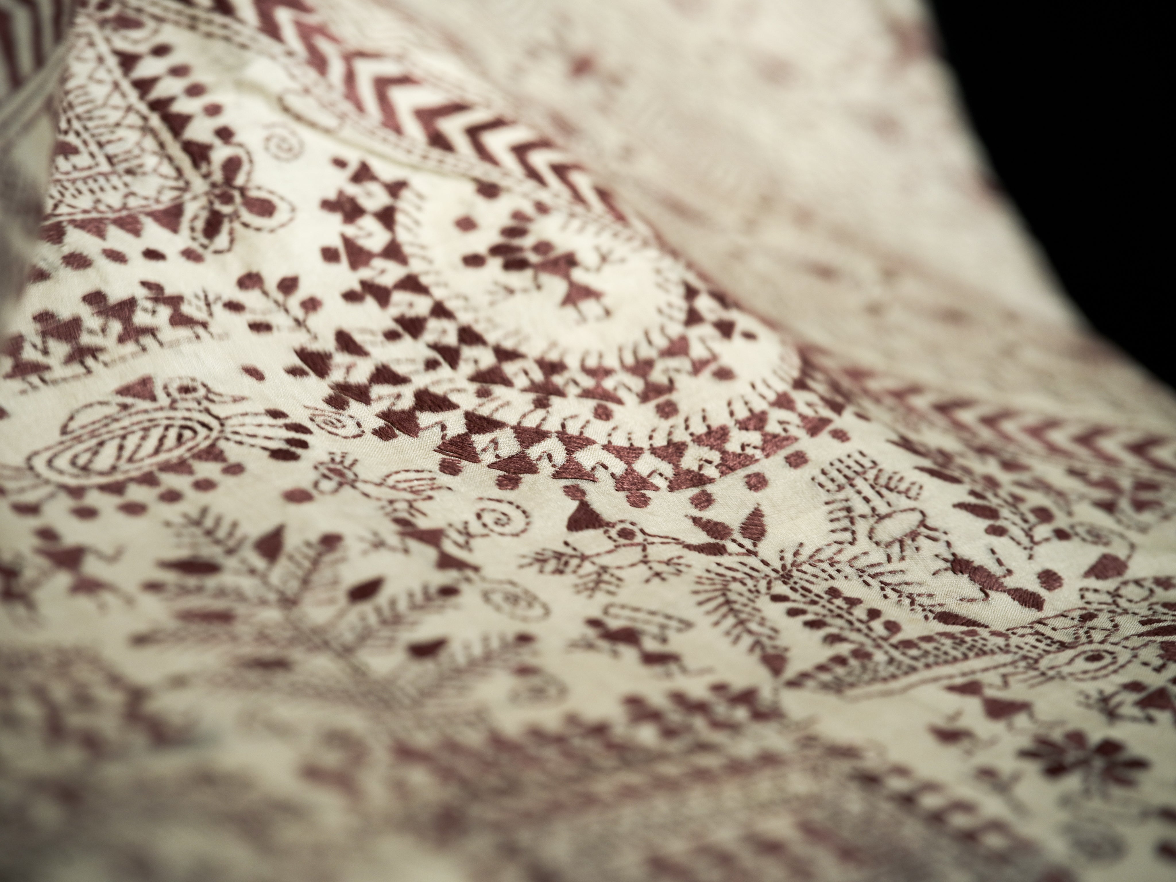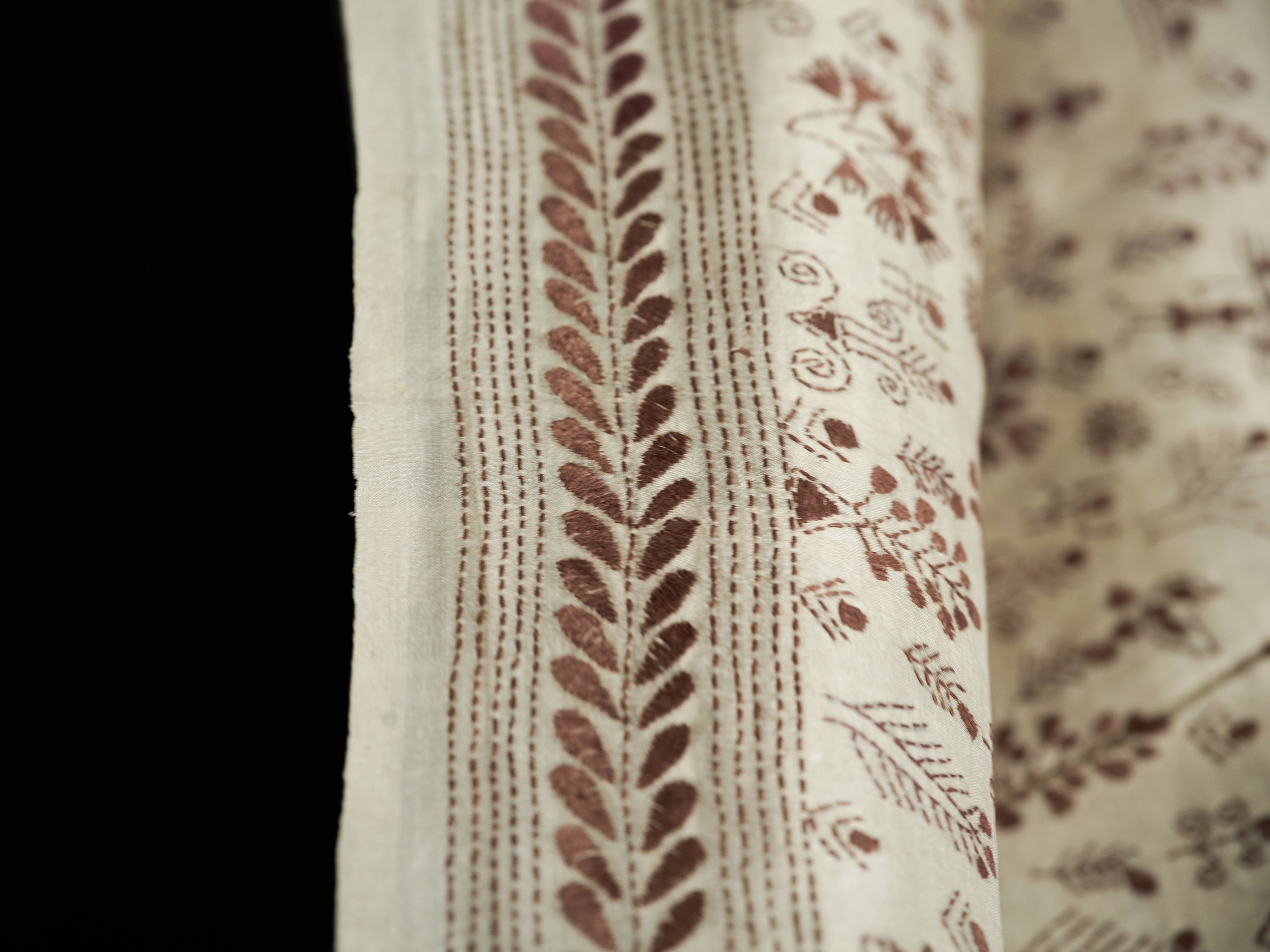 Color - Ivory base with maroon thread embroidery