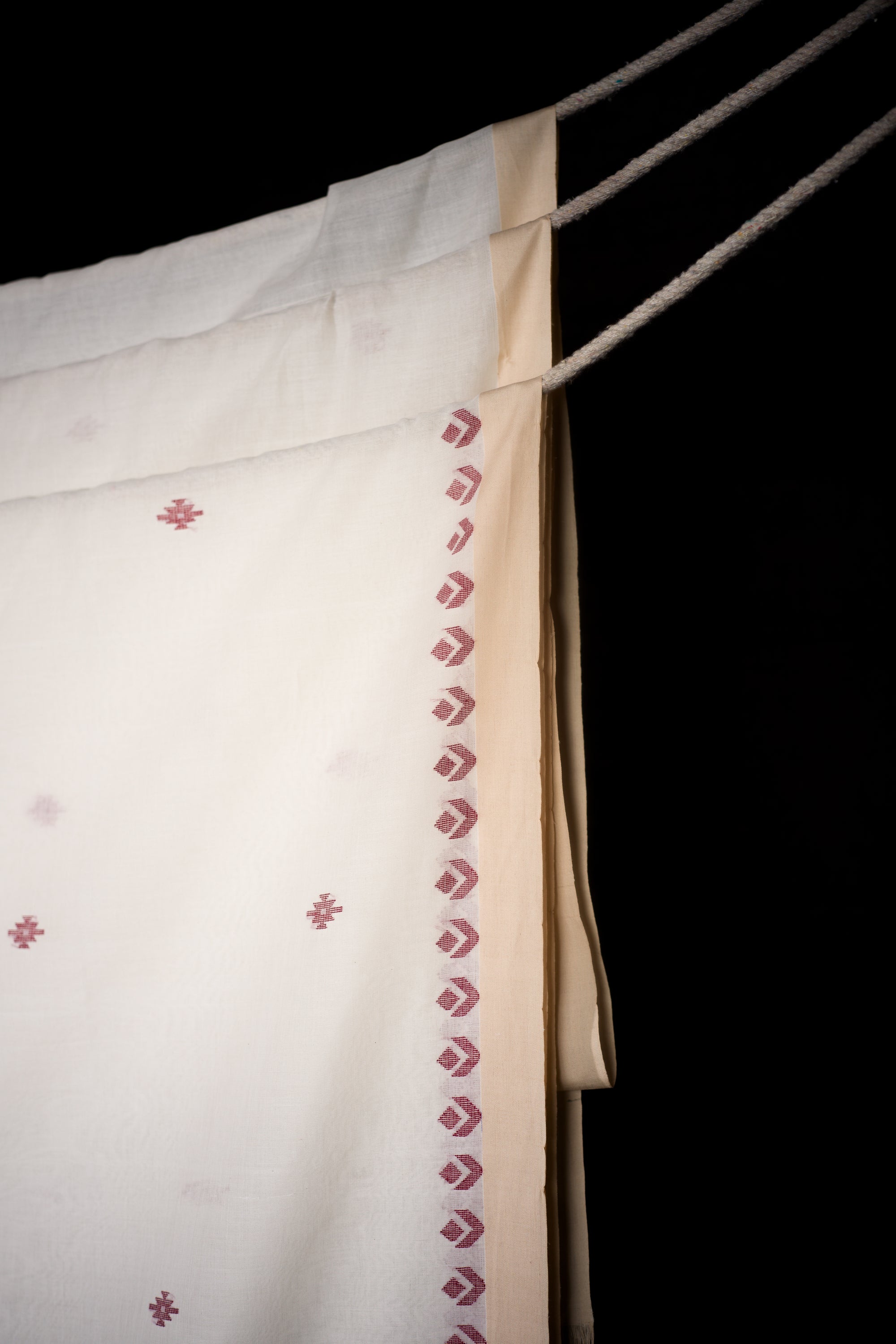 The Jamdani weaving technique, an ancient craft of Bengal, involves inserting motifs individually into the weft by hand. Depending on the intricacy, a single saree can take few weeks to complete and each motif is a testimony to the artisan’s precision and care.