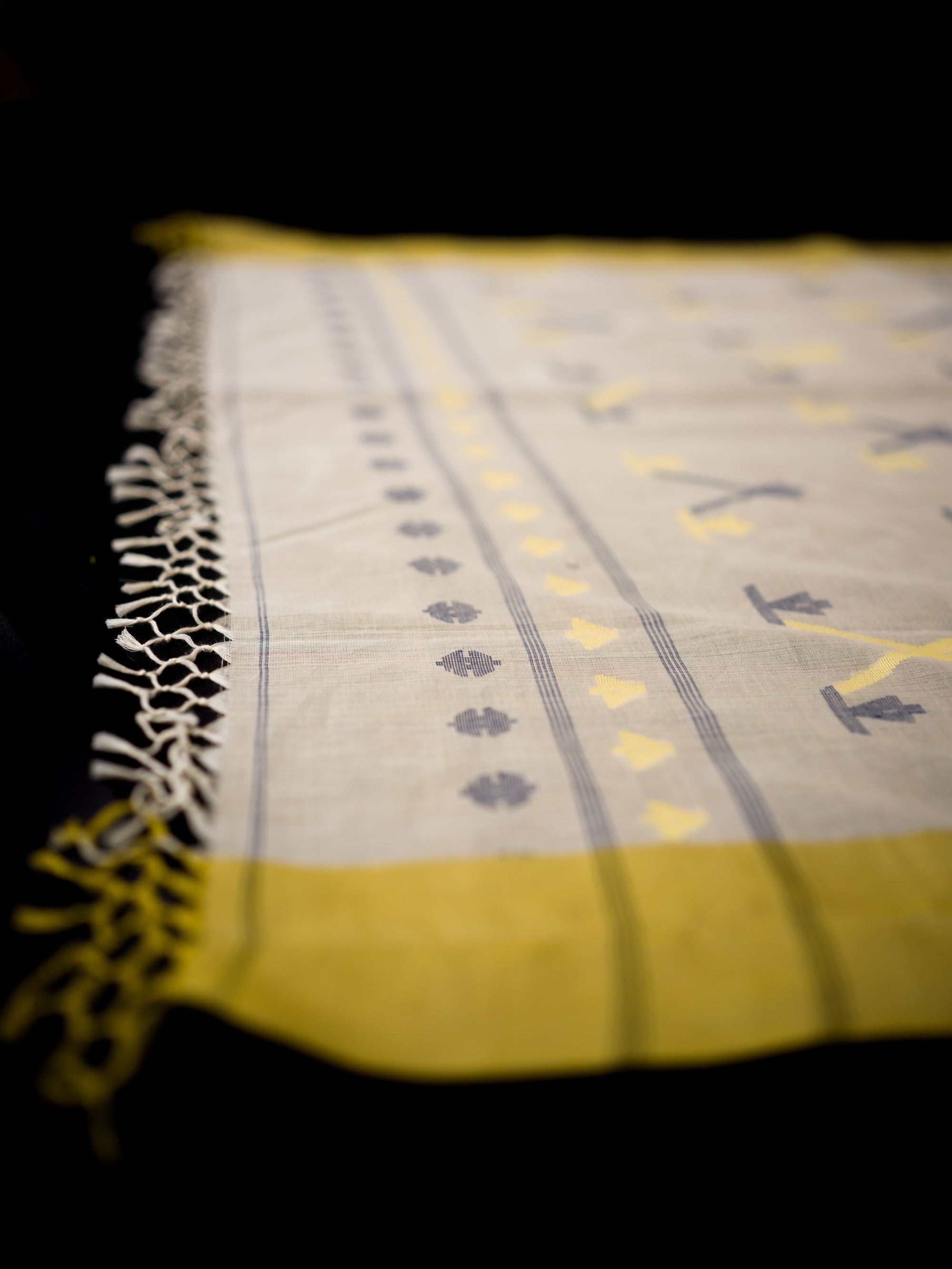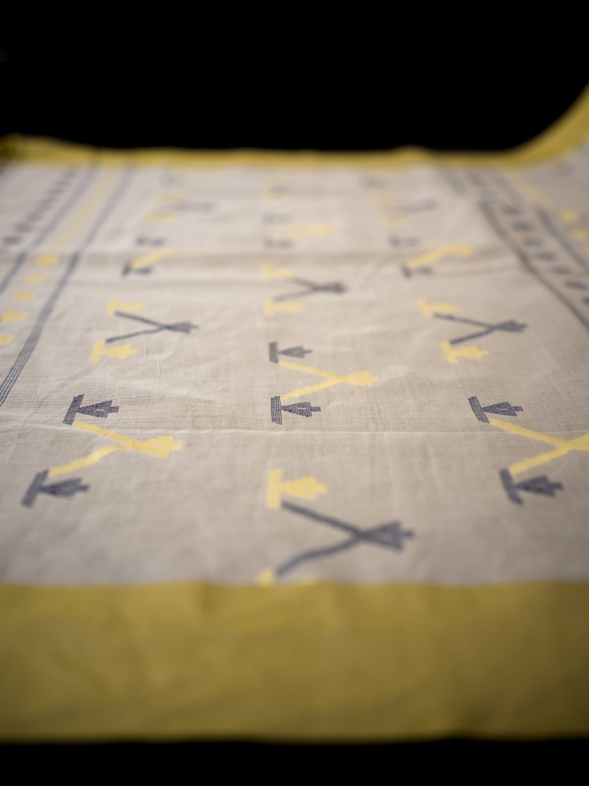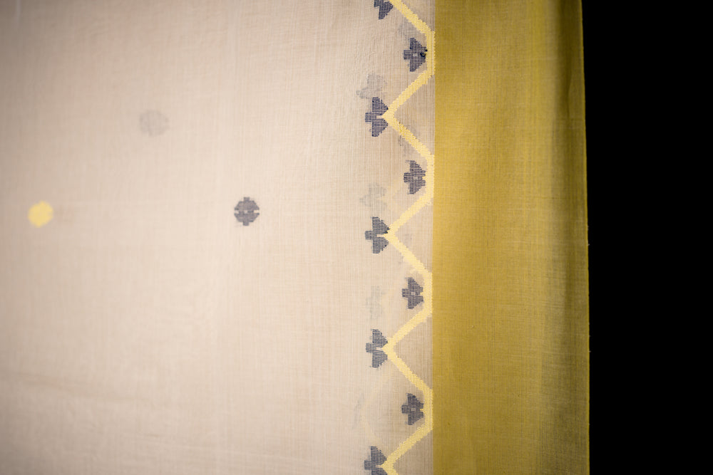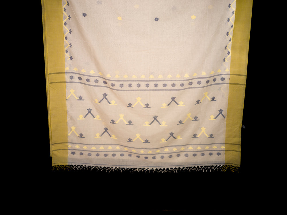 Ivory Jamdaani Saree with Mustard Border and Geometric Motifs