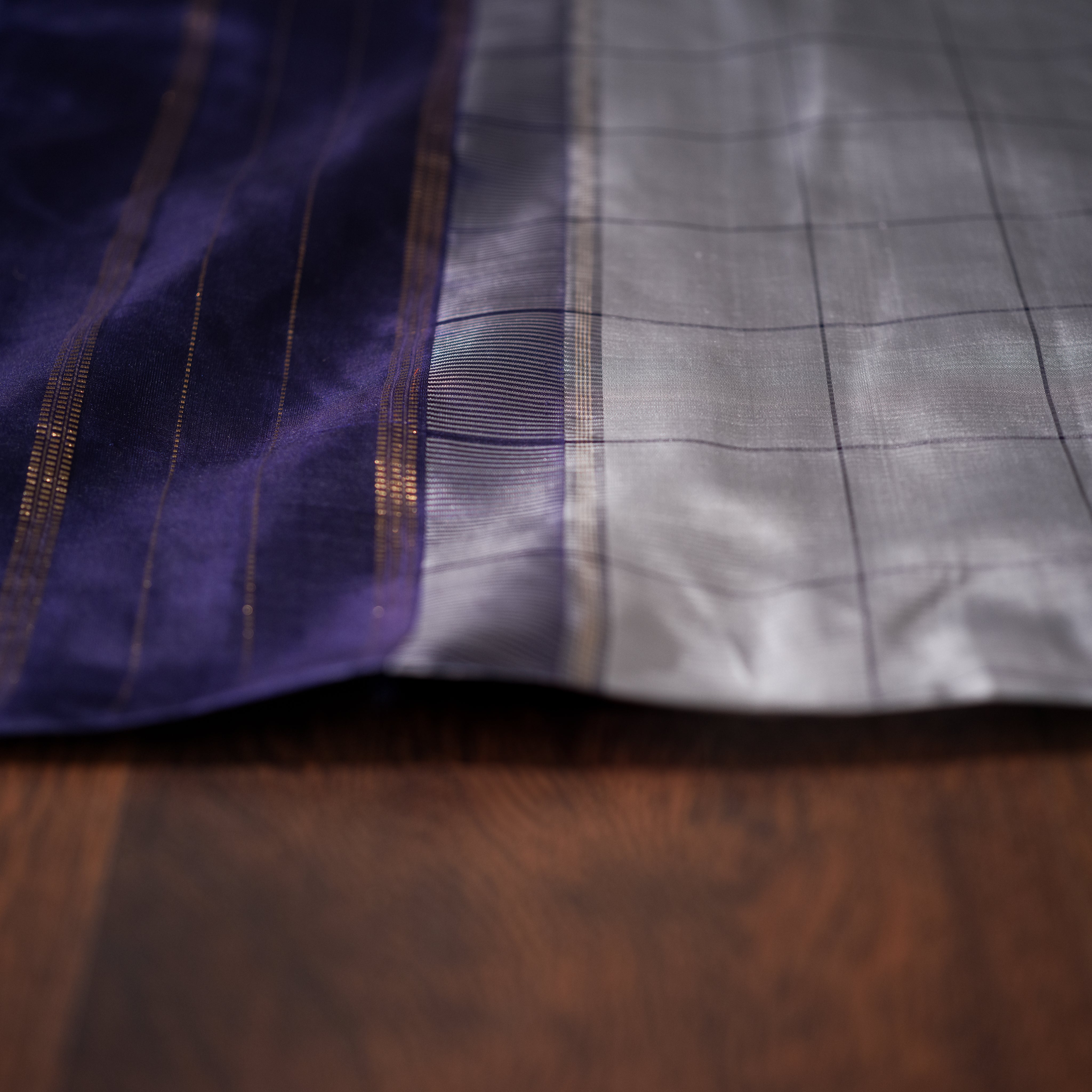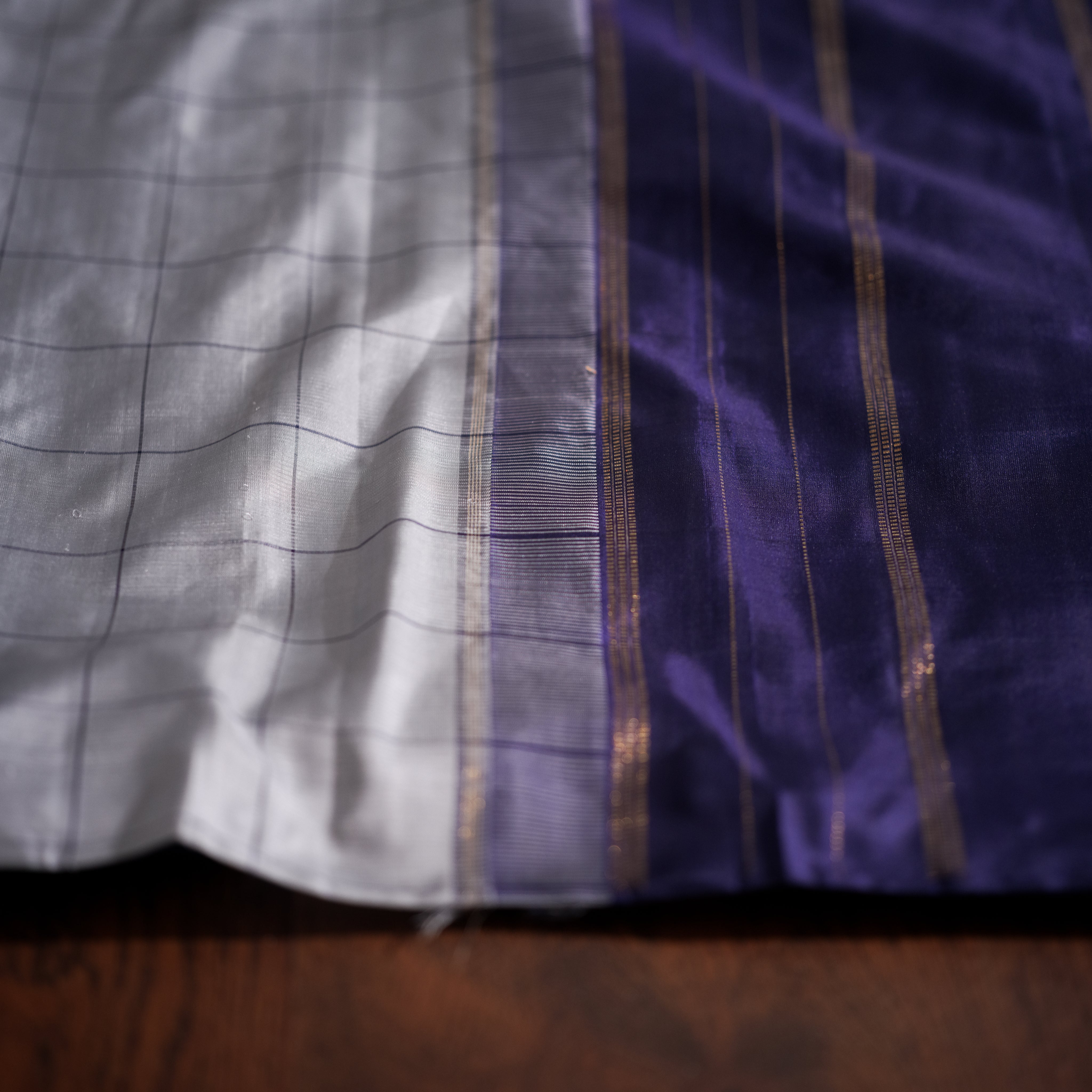 Weaving Technique - Handwoven Kanjivaram with checkered body and zari-striped border