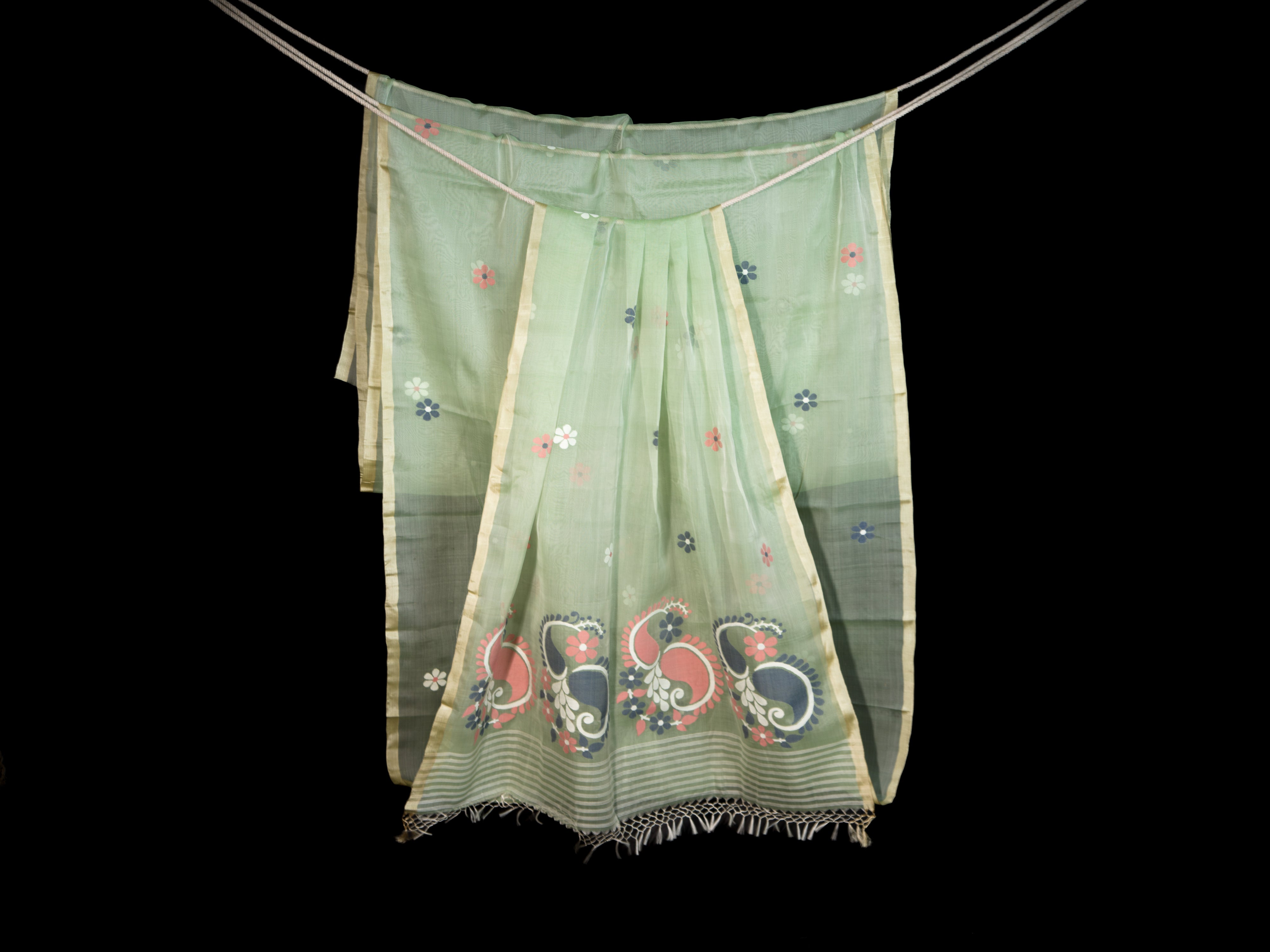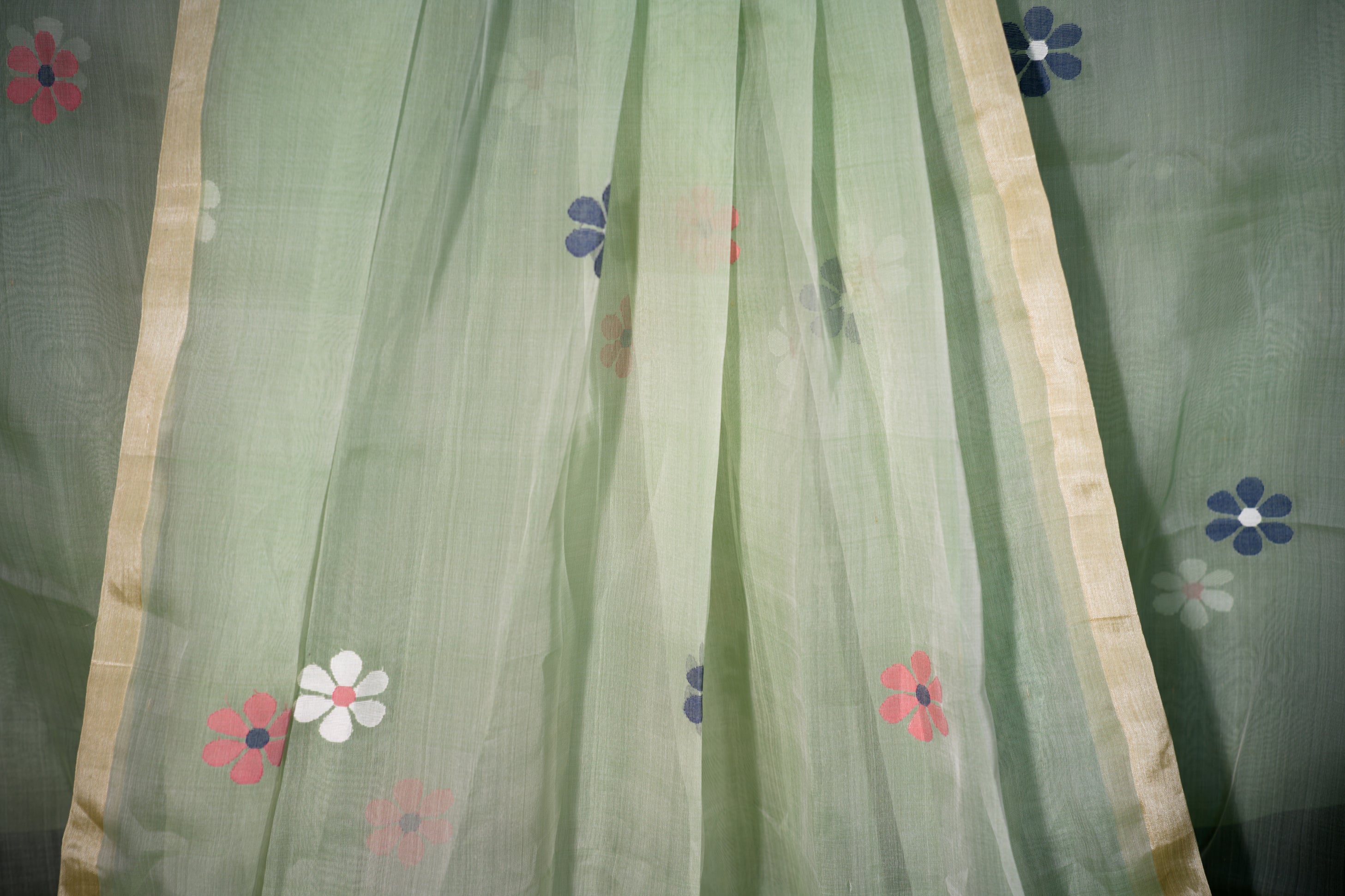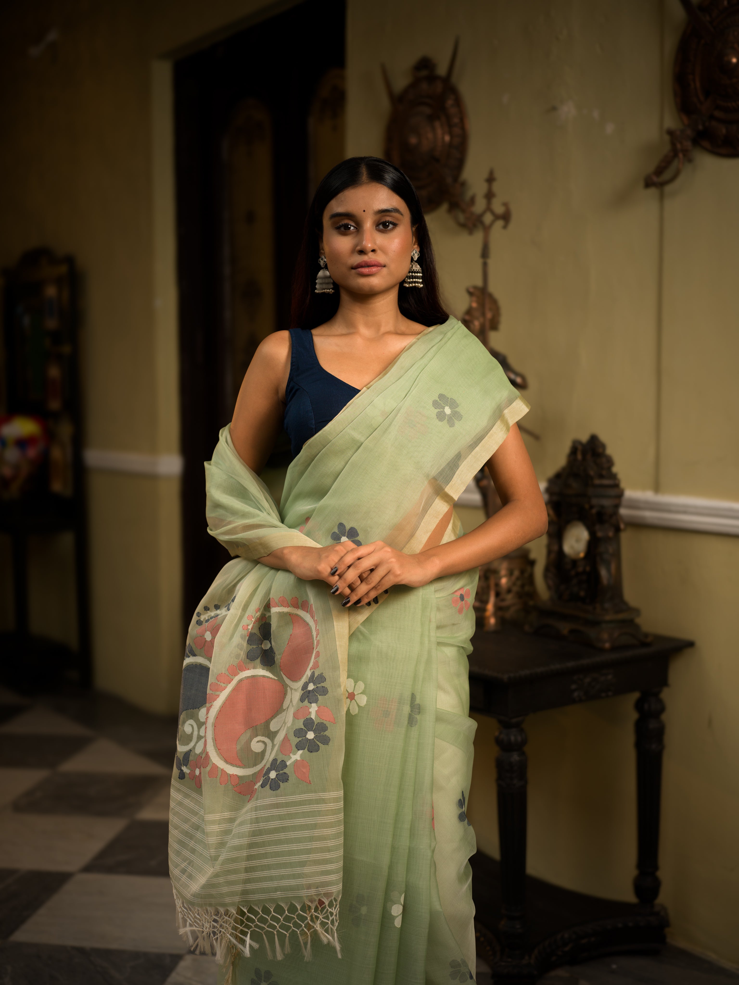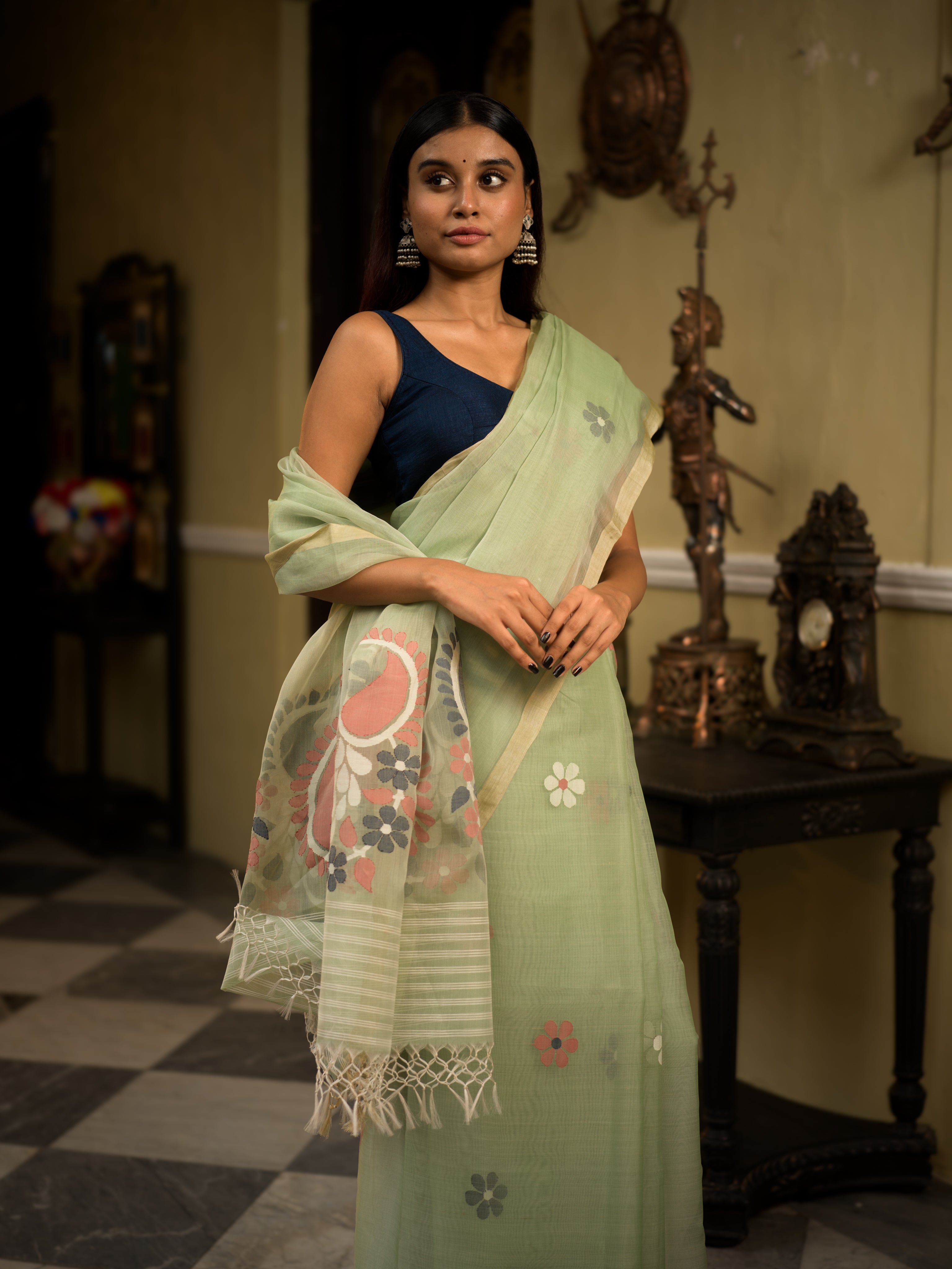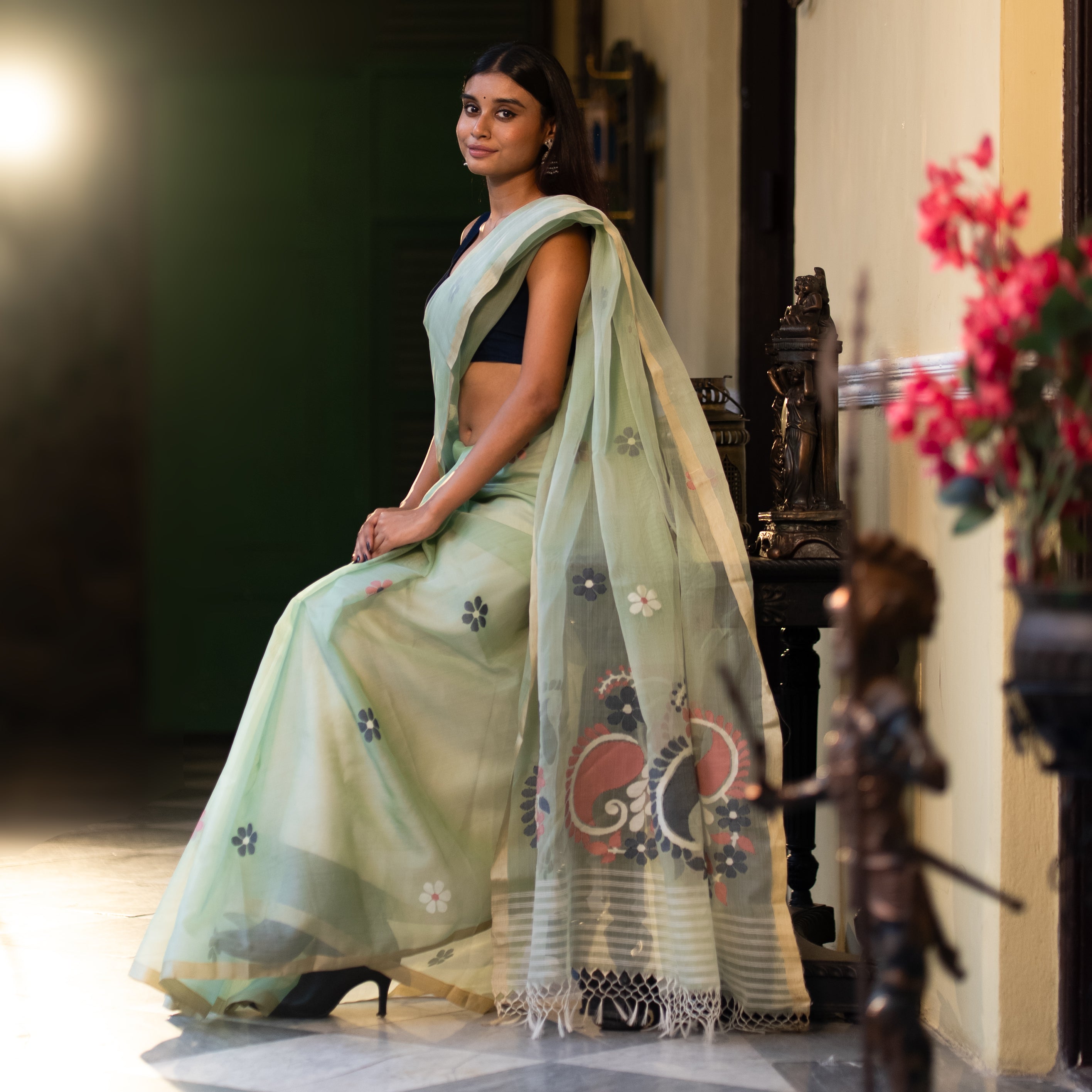 Whispers of Sage, Pure Muslin Jamdaani Saree