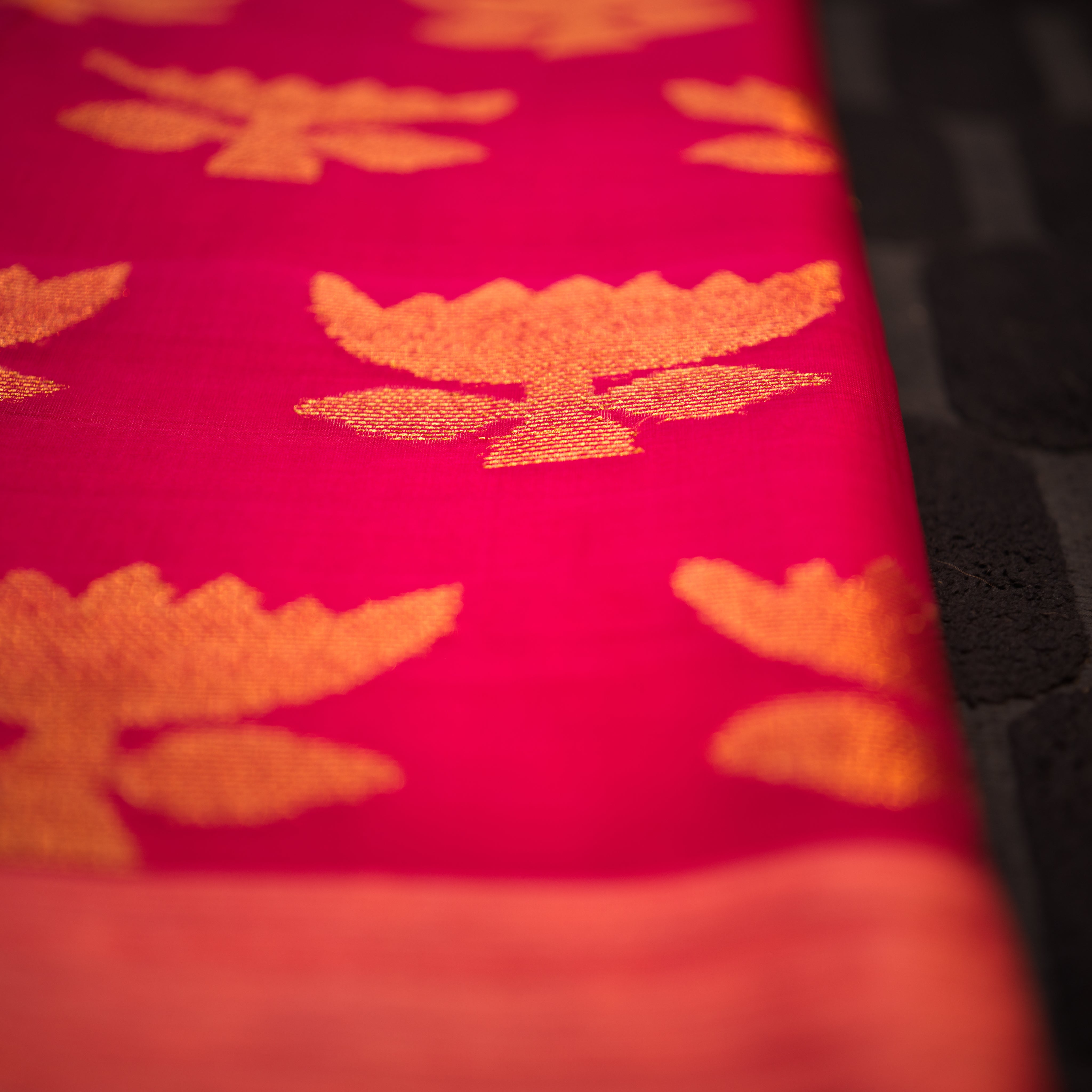 Rani Pink Resham Matka Jamdaani Saree with Floral Patterns
