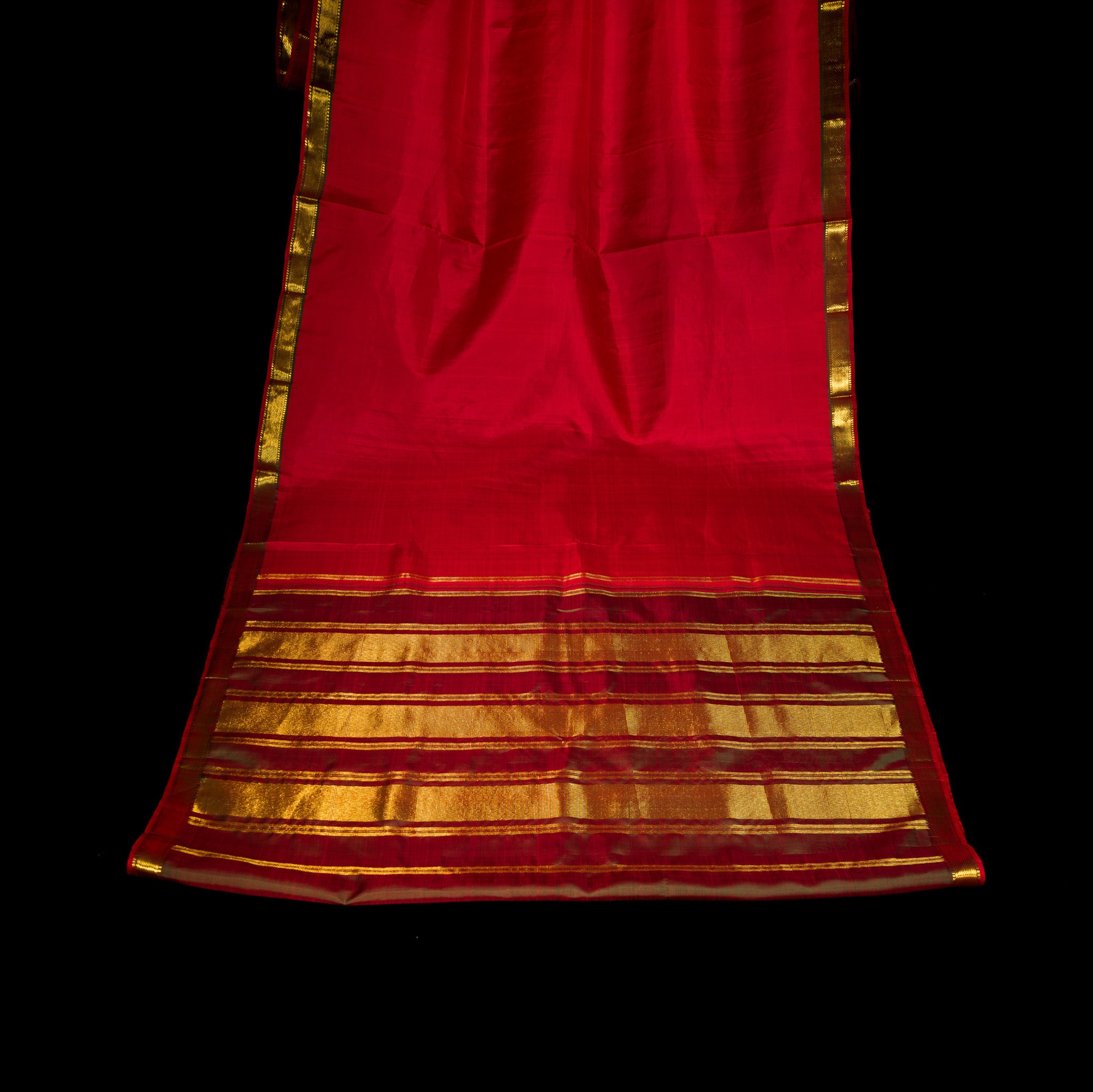 Scarlet Red Kanchipuram Silk Saree with Gold Zari Stripes