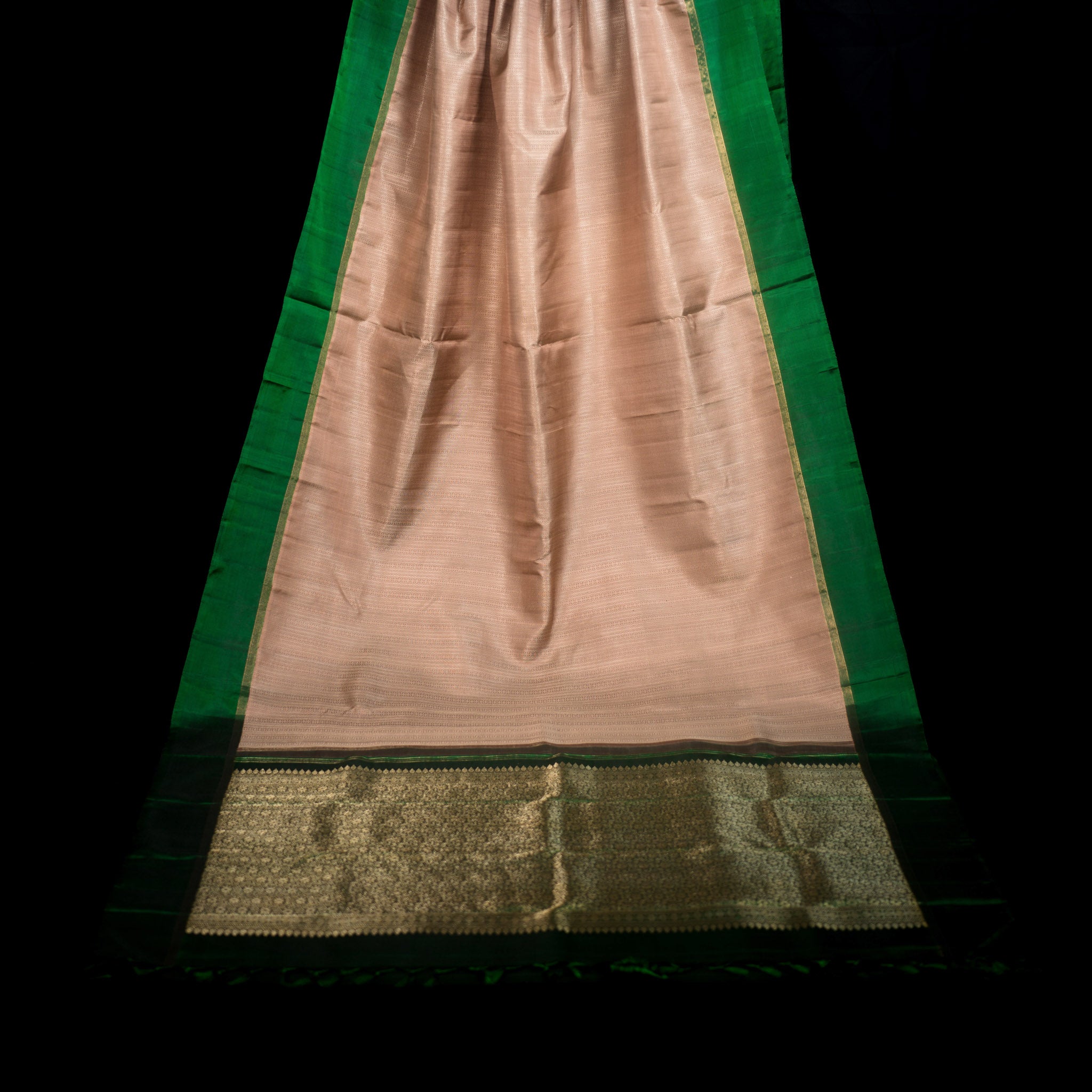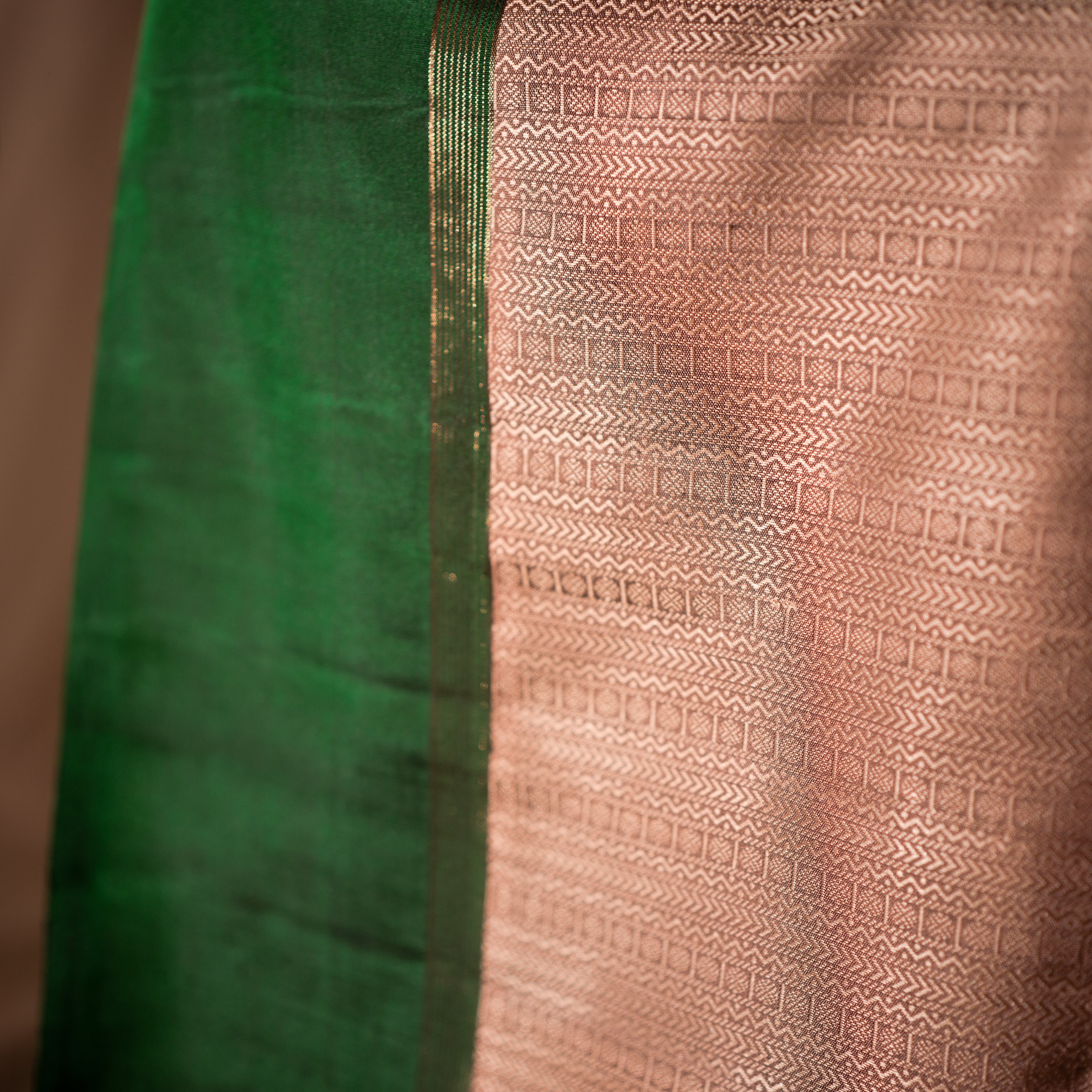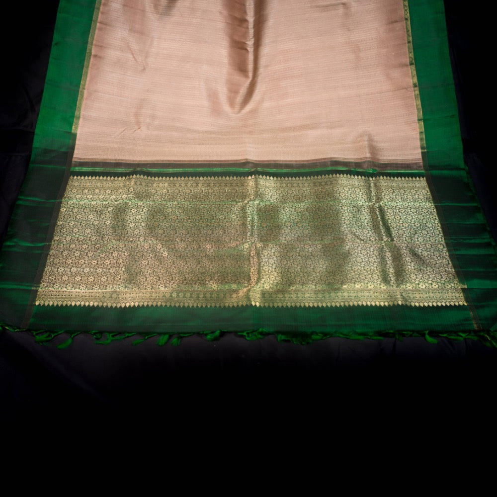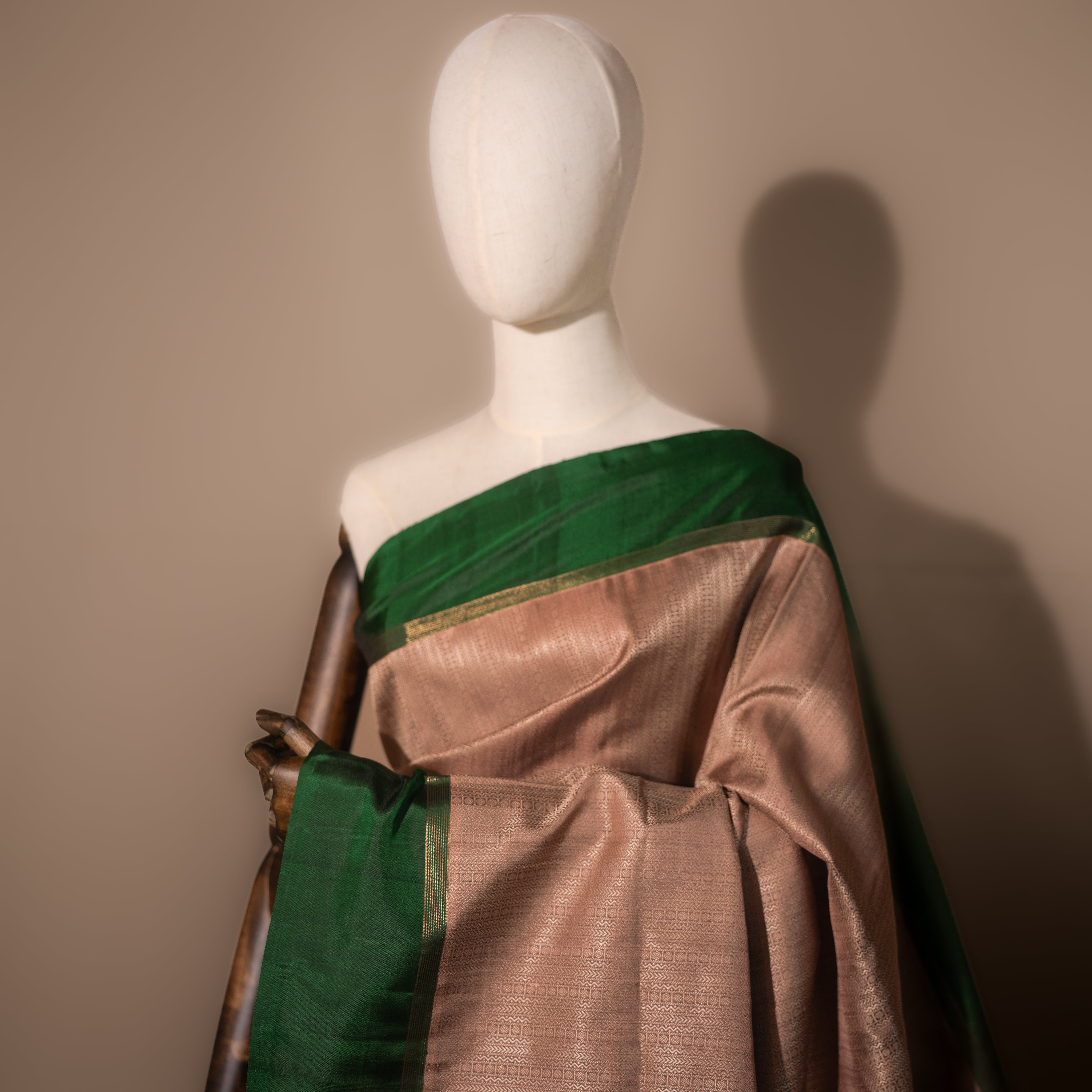 Taupe South Silk Saree with Emerald Green Border and Antique Gold Zari