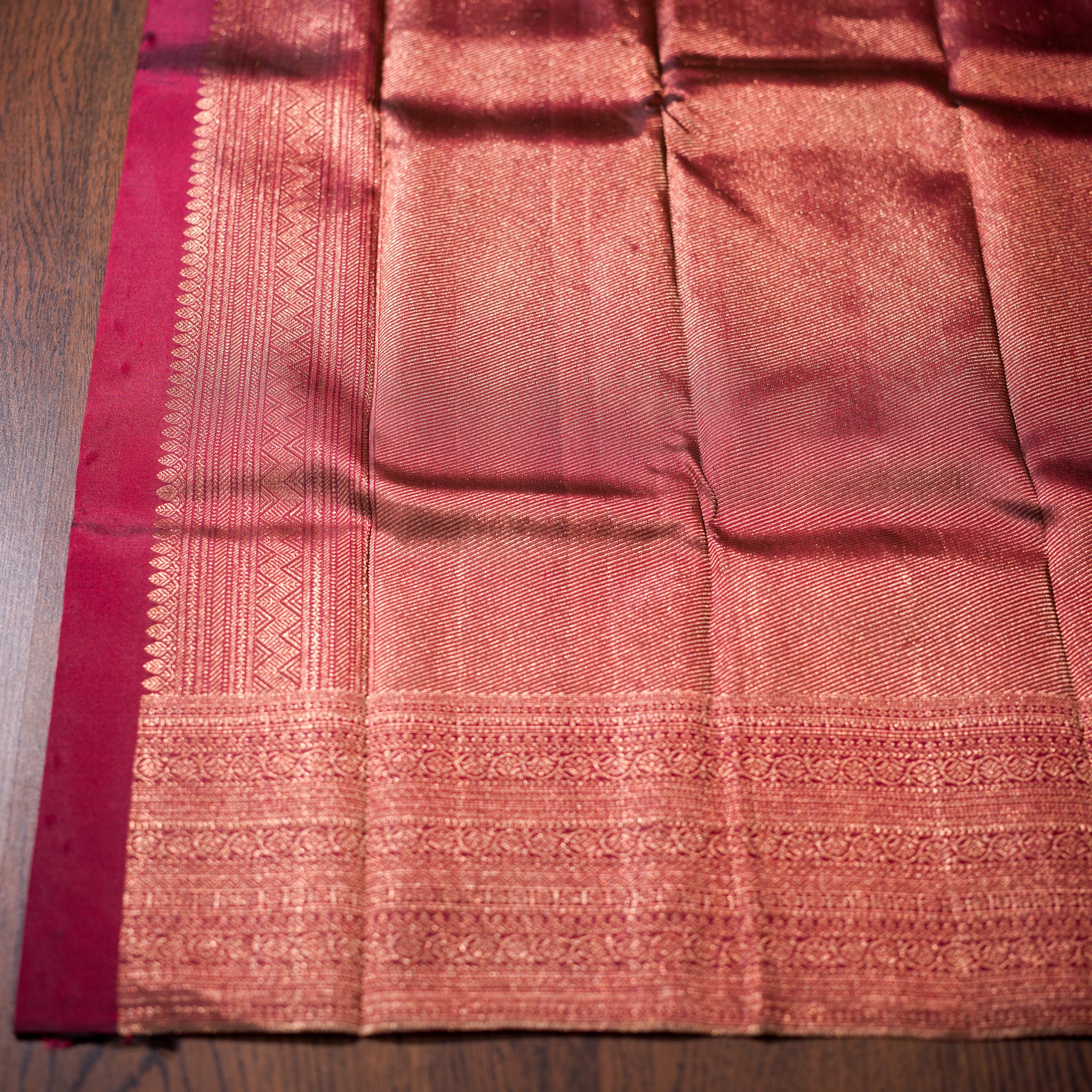 Color – Crimson Red with Self-Zari Detailing